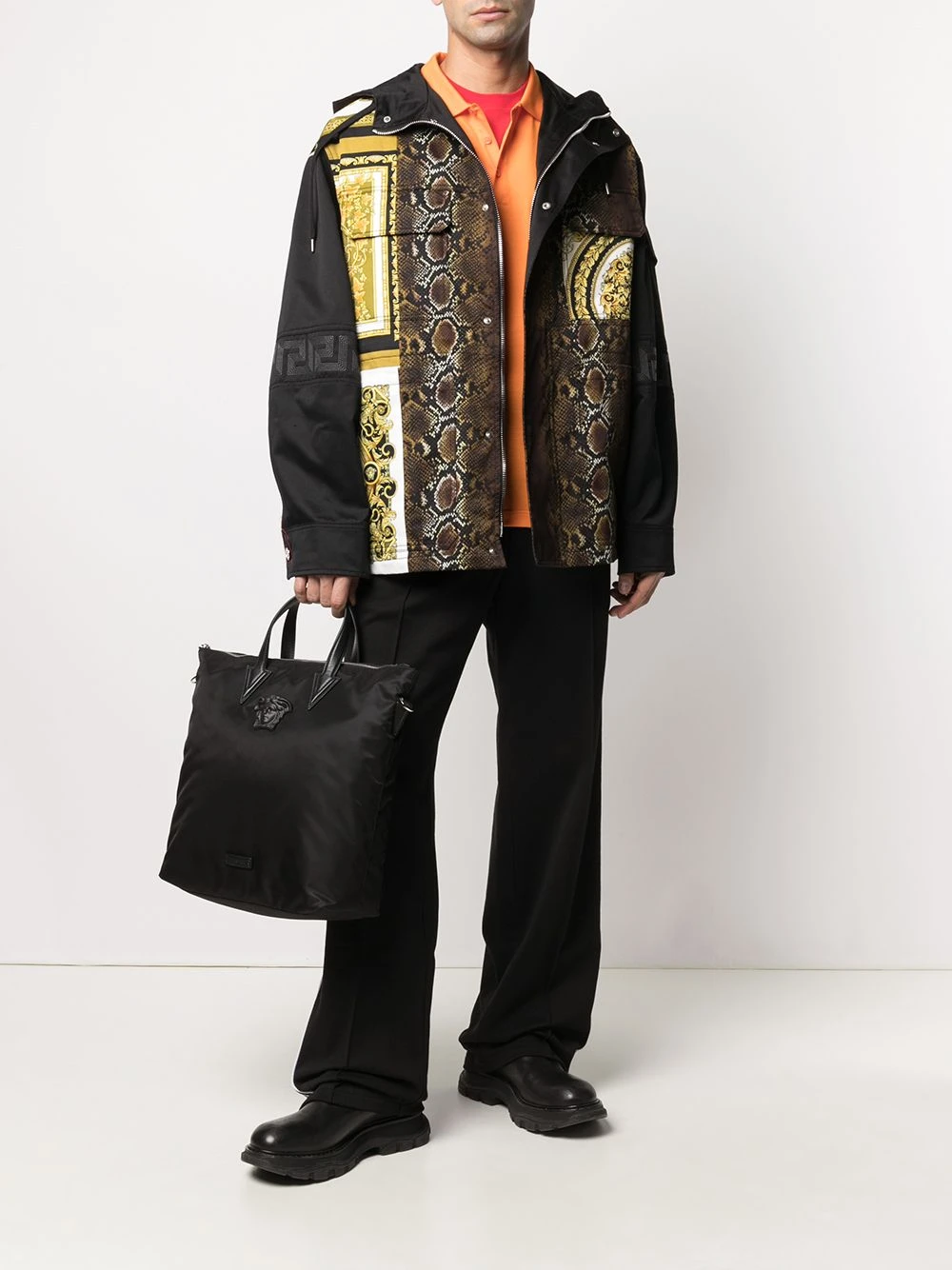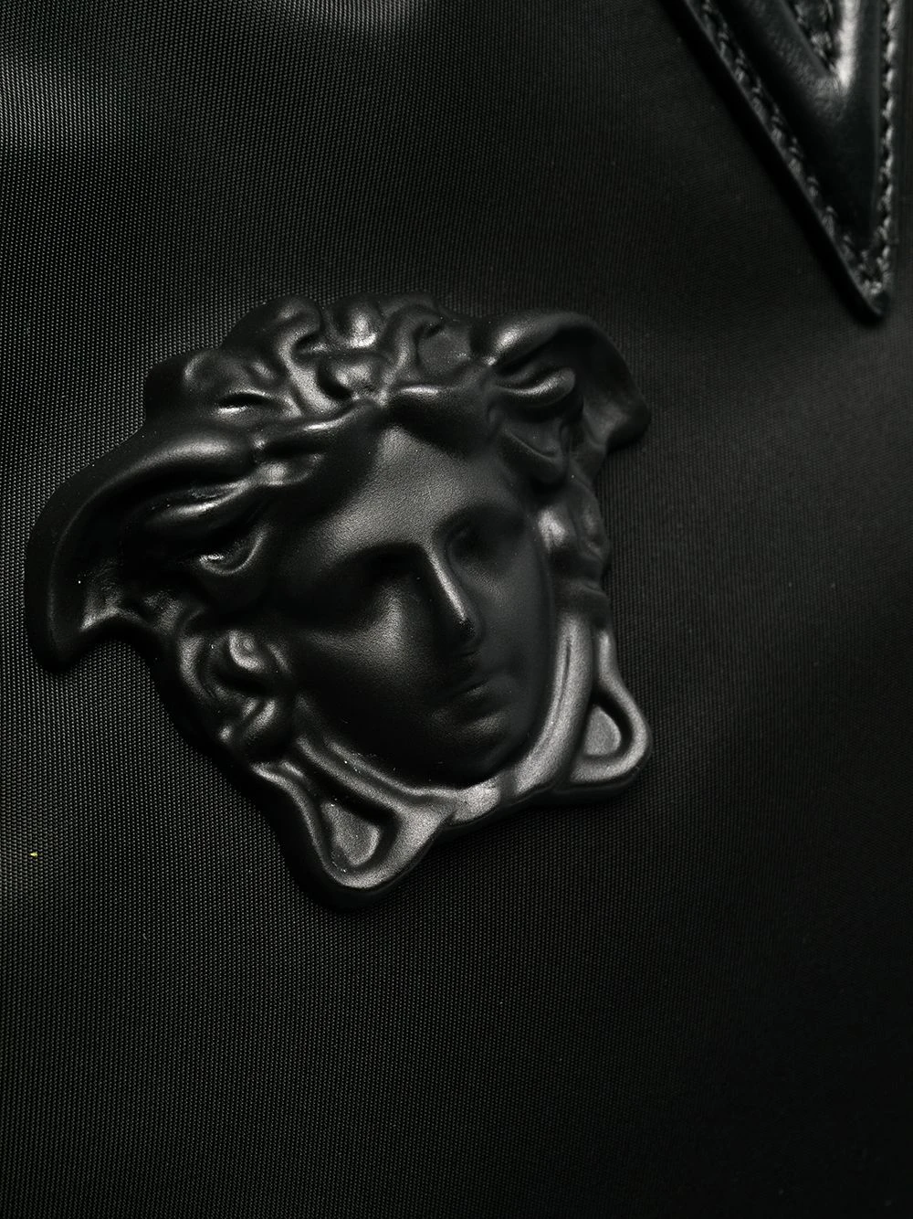 Motif Medusa, anses arrondies, fermeture zippée sur le dessus, bride portée épaule détachable. Couleur : Noir.