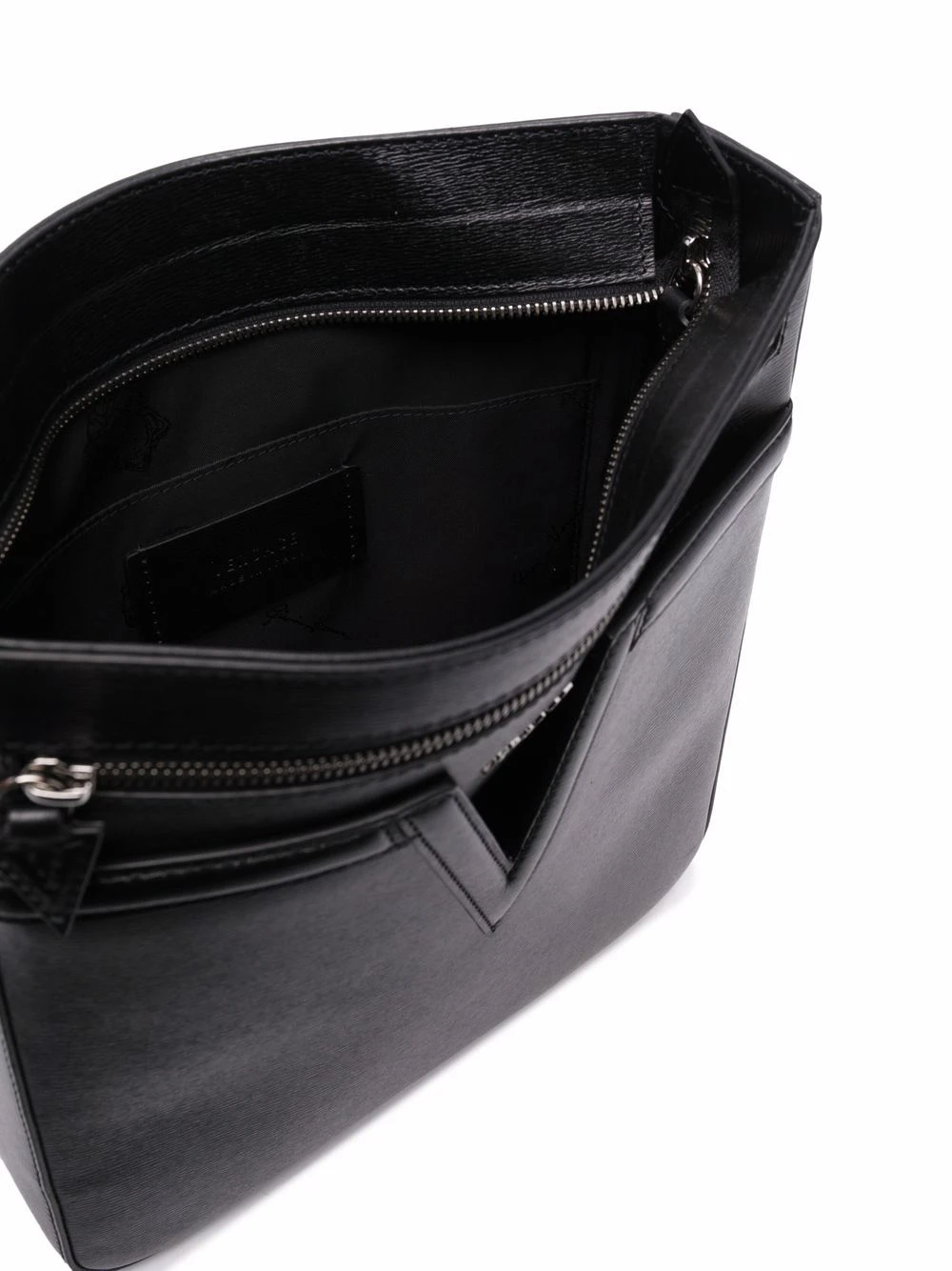 Fini texturé, logo embossé sur le devant, fermeture zippée sur le dessus, bretelle portée épaule unique, compartiment principal, poche zippée sur le devant.
