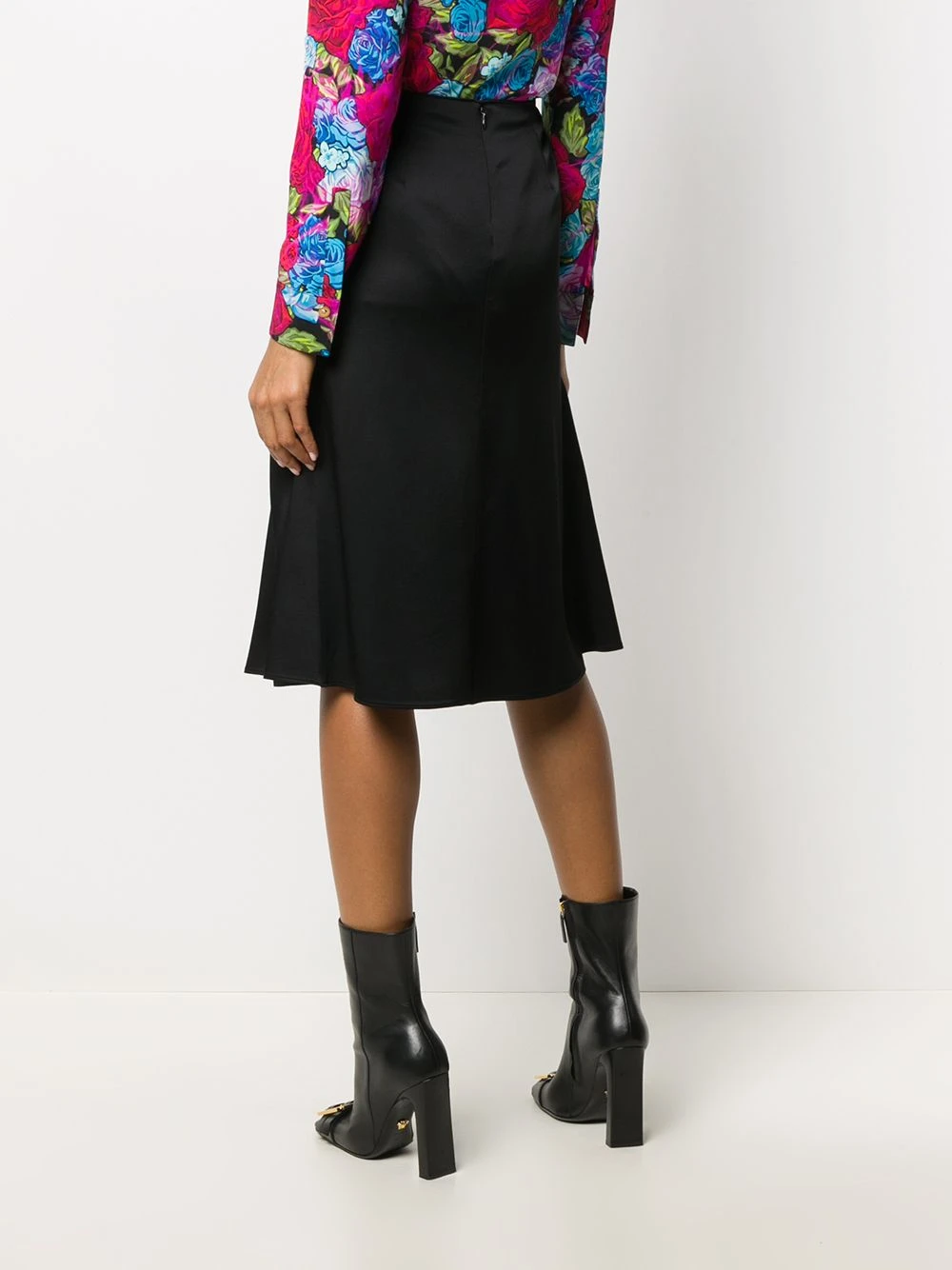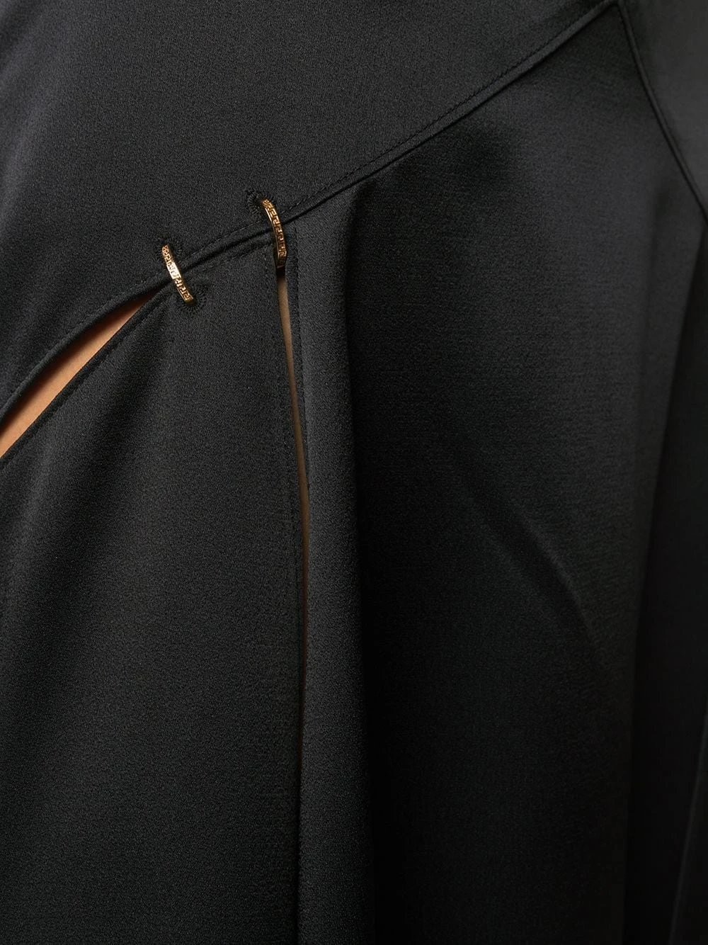 Taille normale, fermeture zippée dissimulée à l’arrière, finitions en métal doré, ourlet incurvé. Couleur : noir.