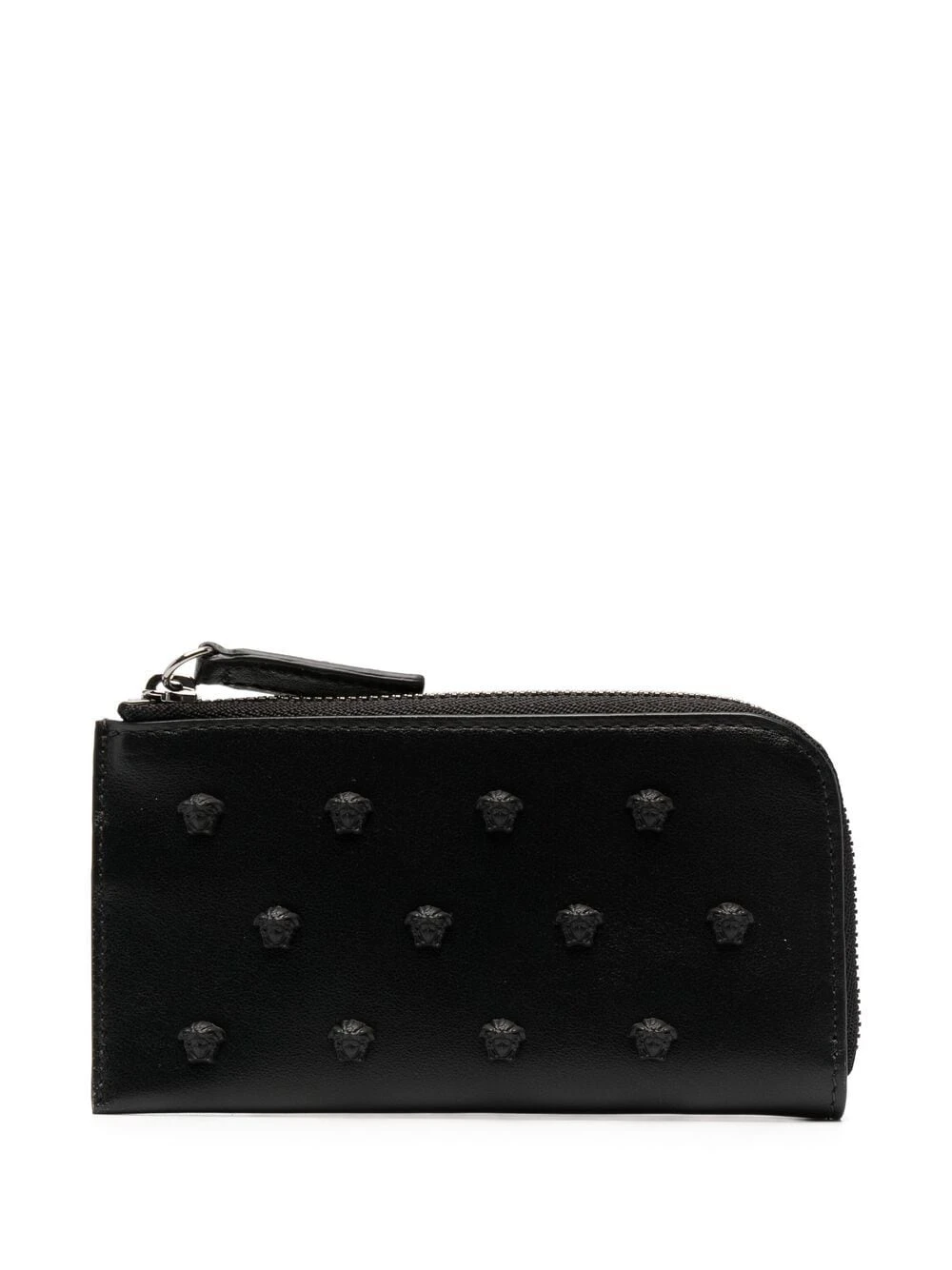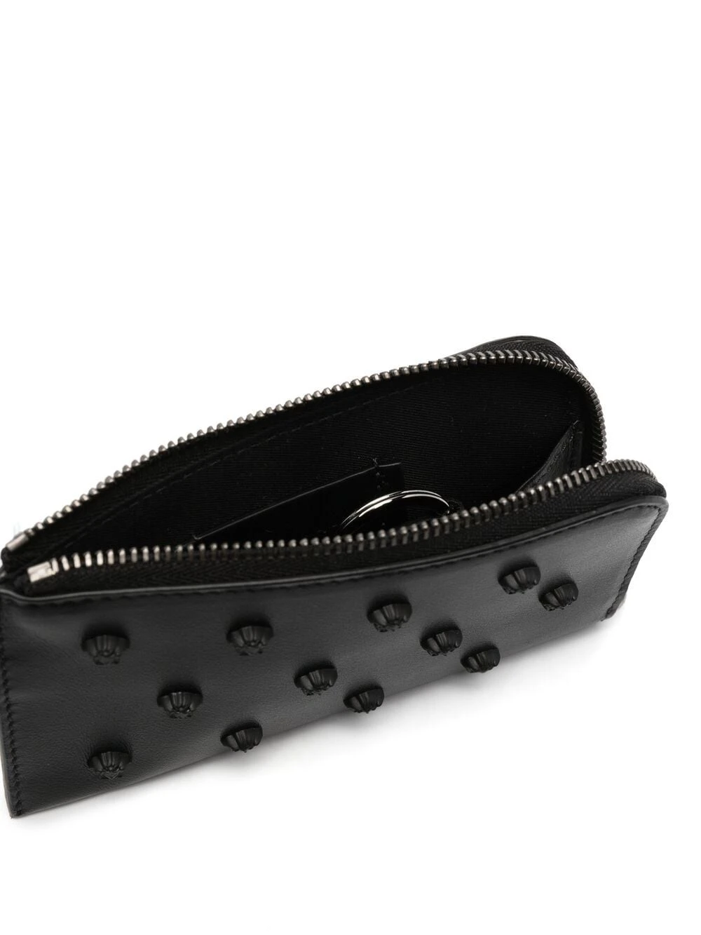 Détail Medusa, anneau porte-clés, fentes pour carte. Couleur : noir. Matière : cuir.