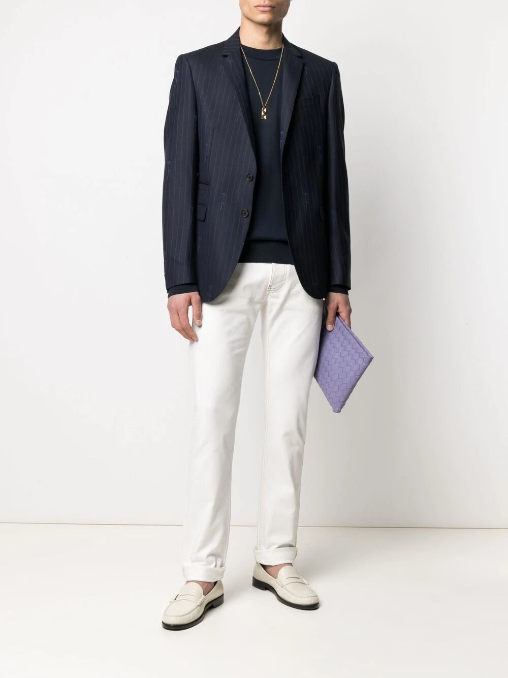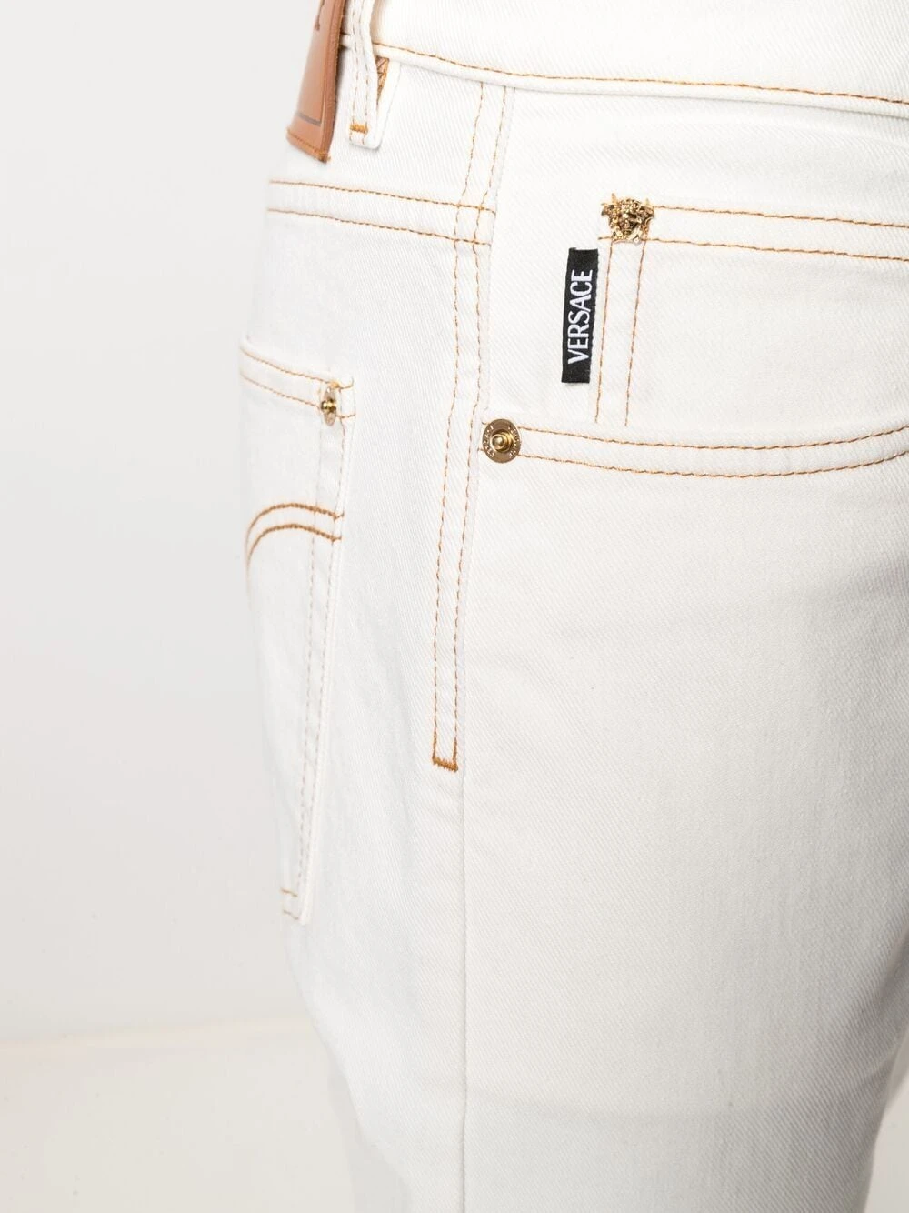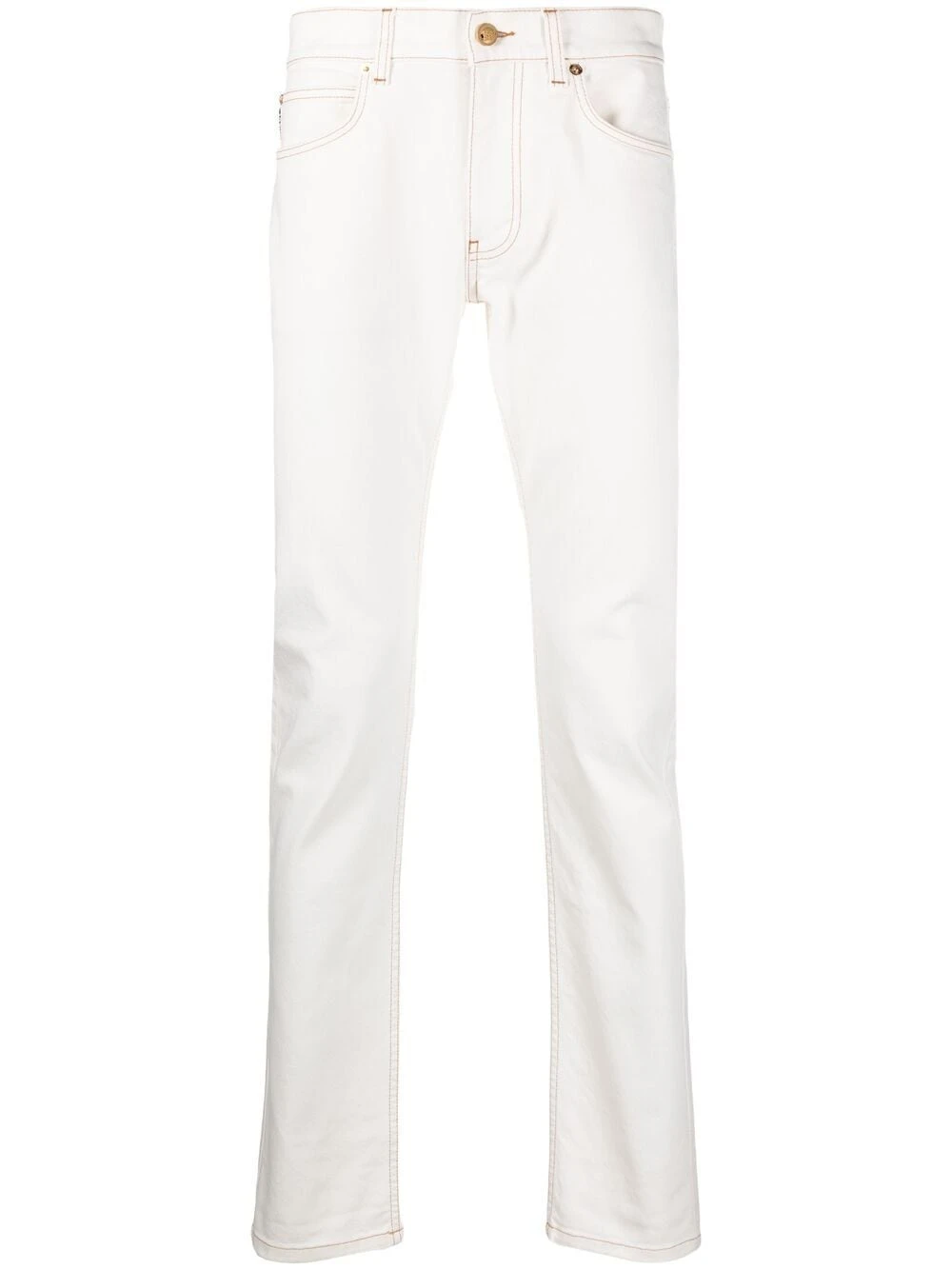 Patch logo sur l’arrière, passants de ceinture, fermeture à zip et boutons sur le devant, 5 poches classiques. Couleur : blanc. Matière : coton mélangé.