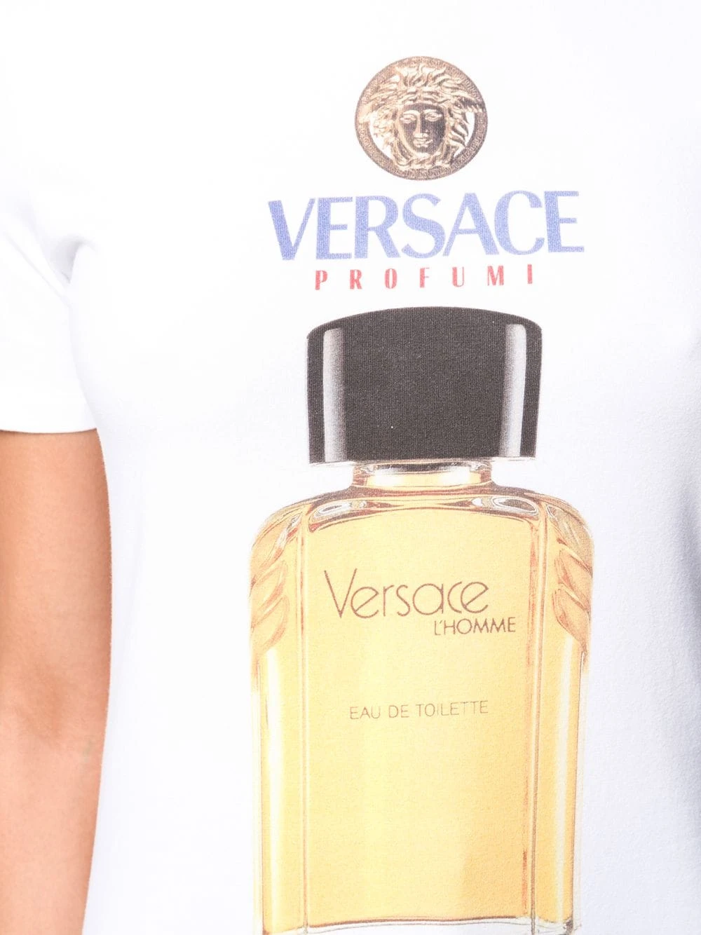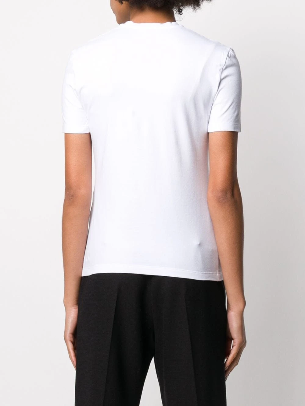 T-shirt ajusté à logo en coton mélangé Versace avec encolure ronde, manches courtes et ourlet droit. Couleur : blanc.