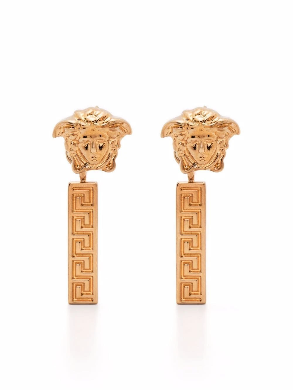 Pour oreilles percées, motif Medusa, détail Greca signature, fermoir cliquet. Matière : laiton. Les deux font la paire ! Ces boucles d’oreilles sont vendues par paire.
