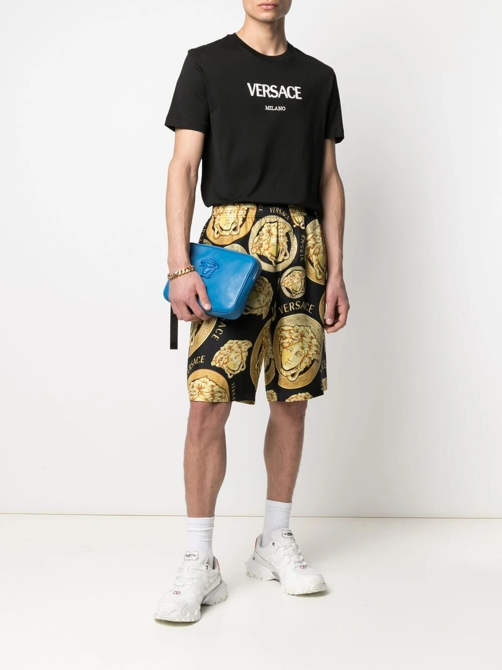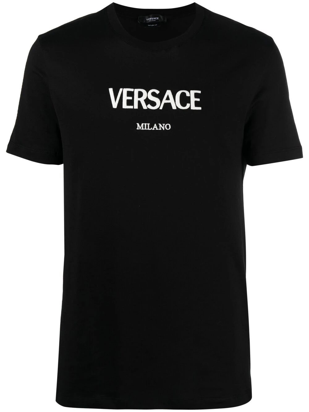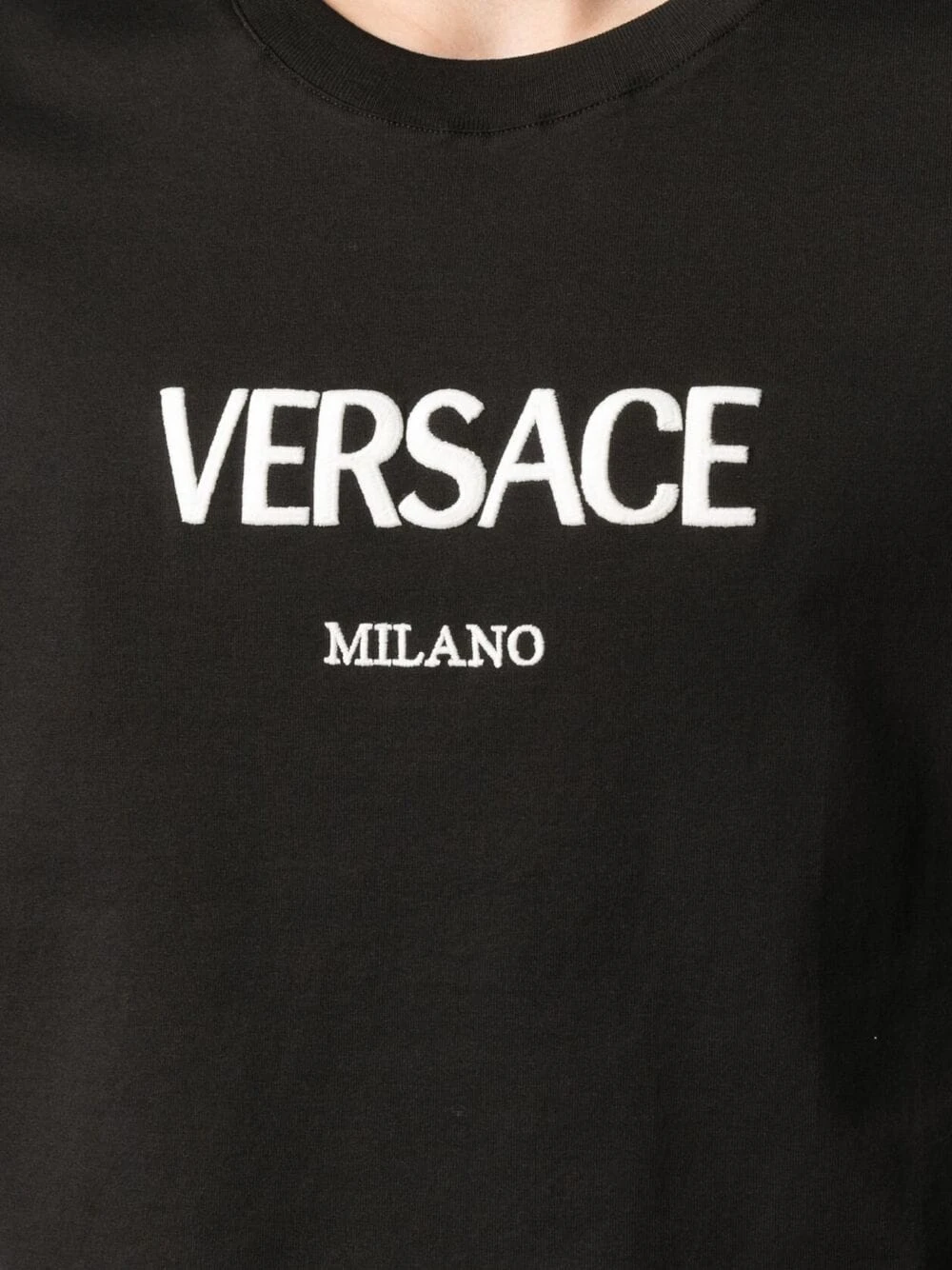 Tricot point jersey, logo imprimé à la poitrine, encolure ras du cou, manches courtes, ourlet droit. Couleur : noir. Matière : coton.