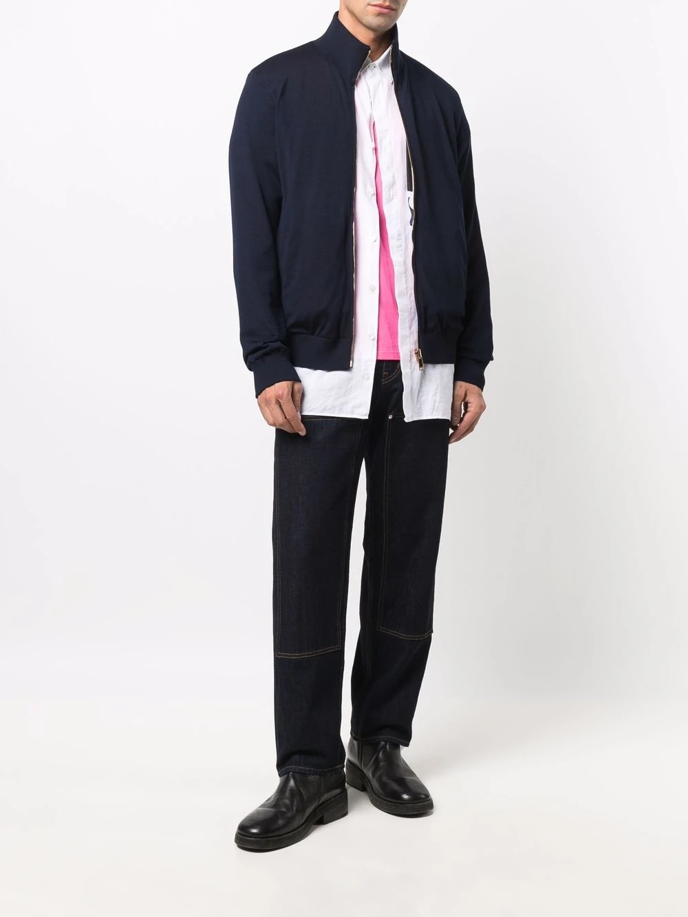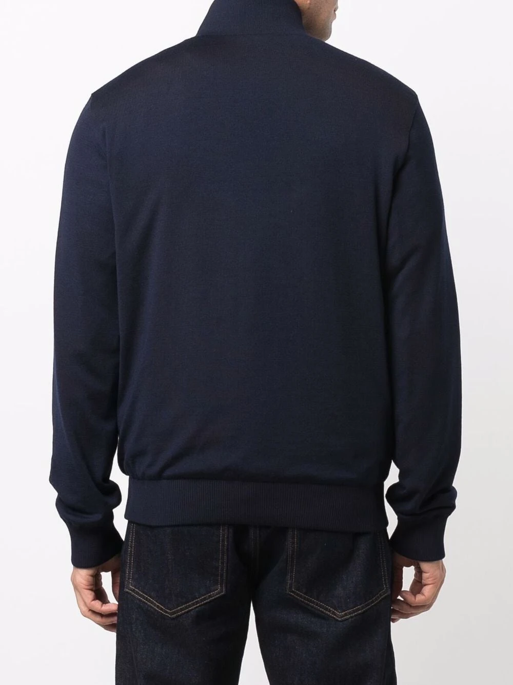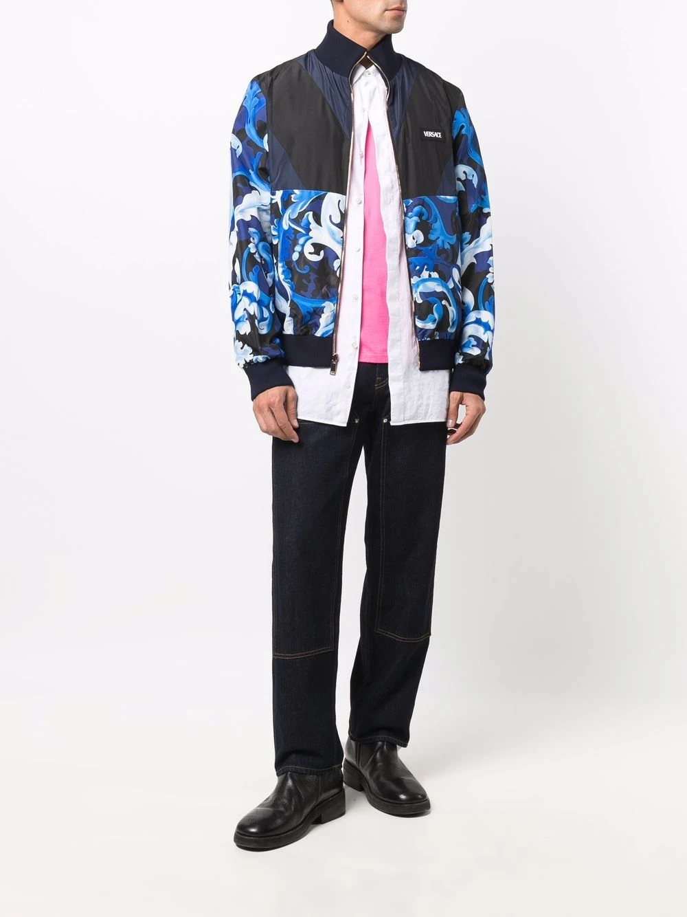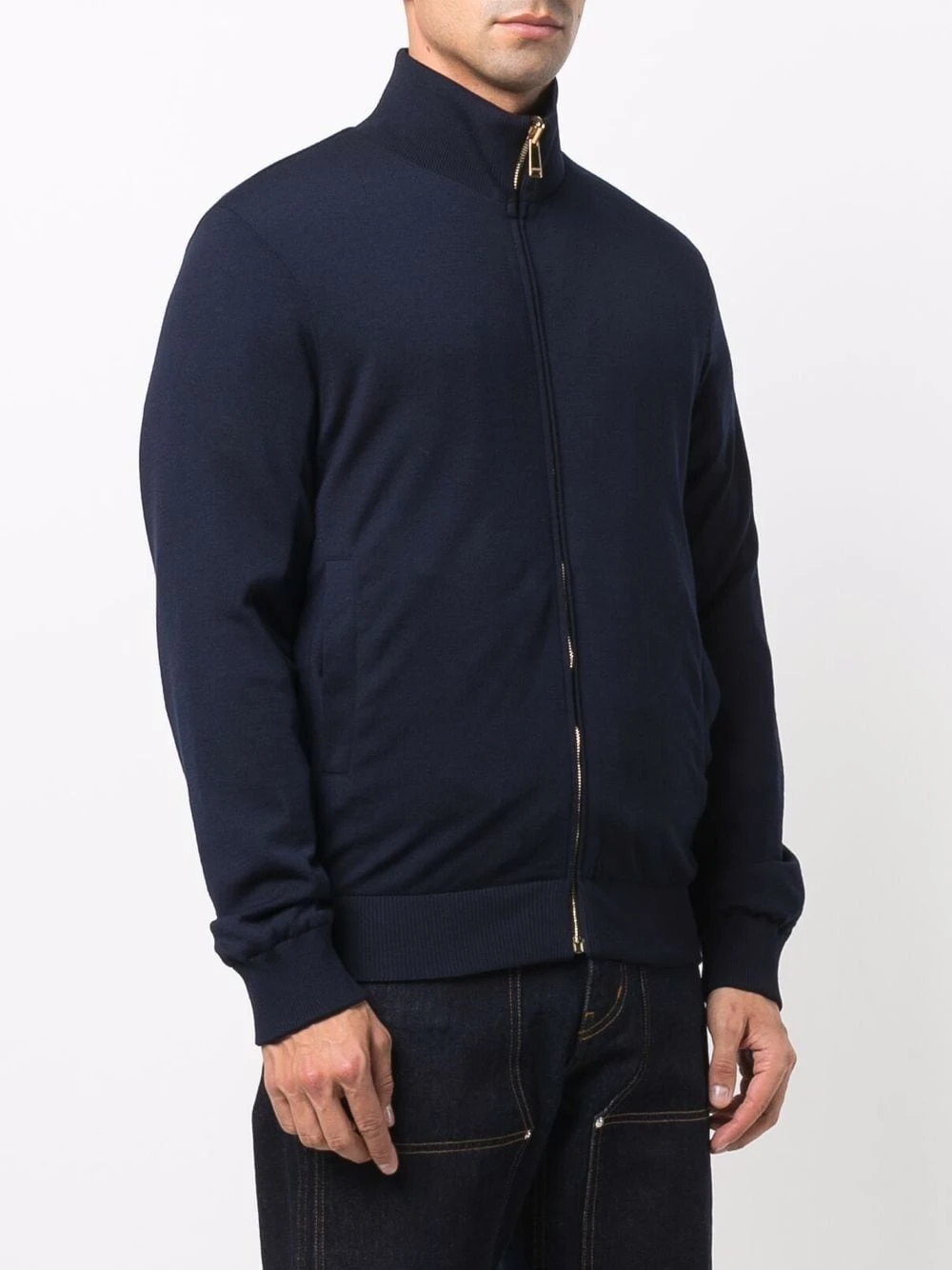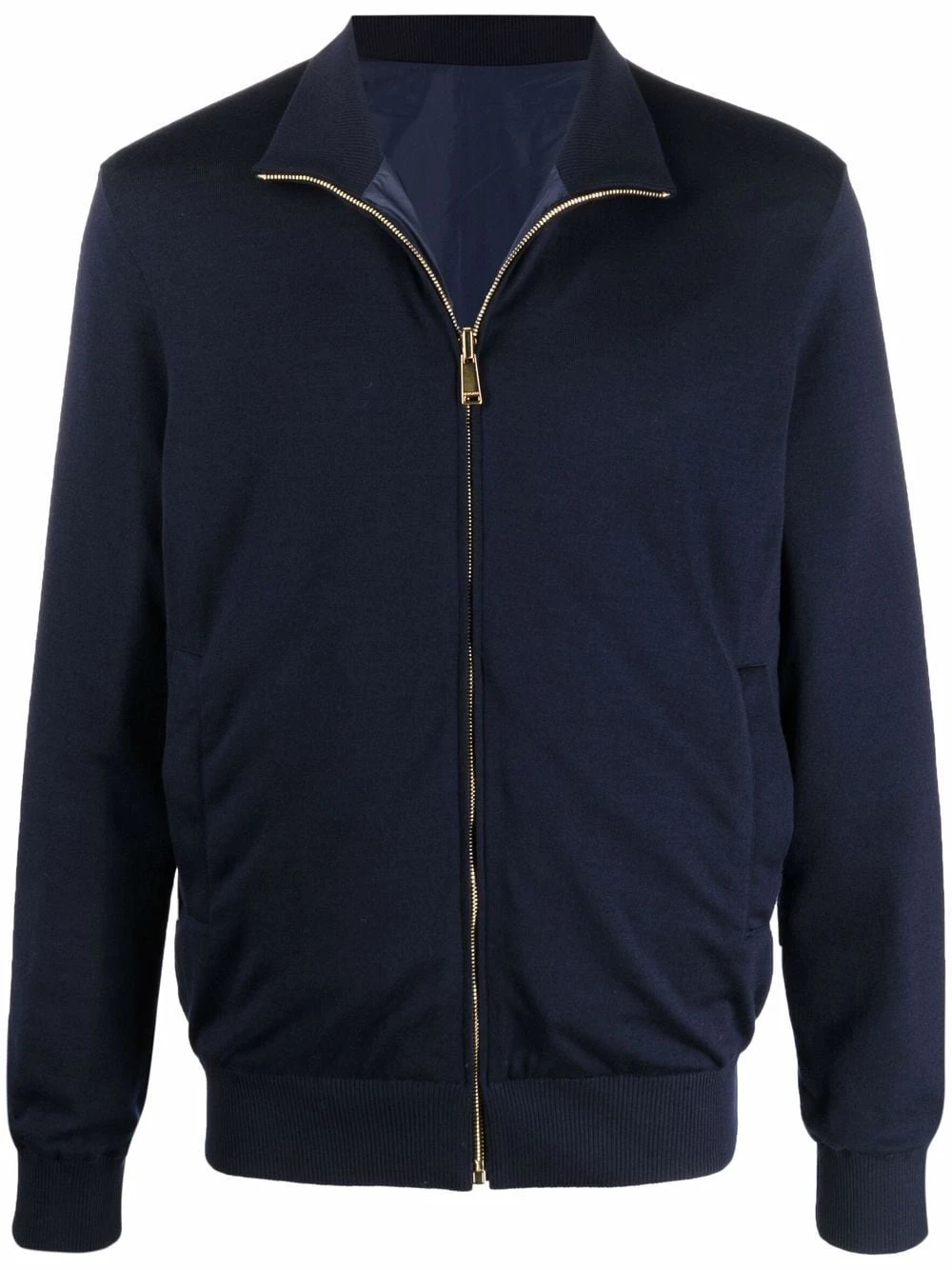 Patch logo sur le côté, design réversible, col montant, fermeture zippée devant, deux poches latérales fendues. Couleur : bleu.