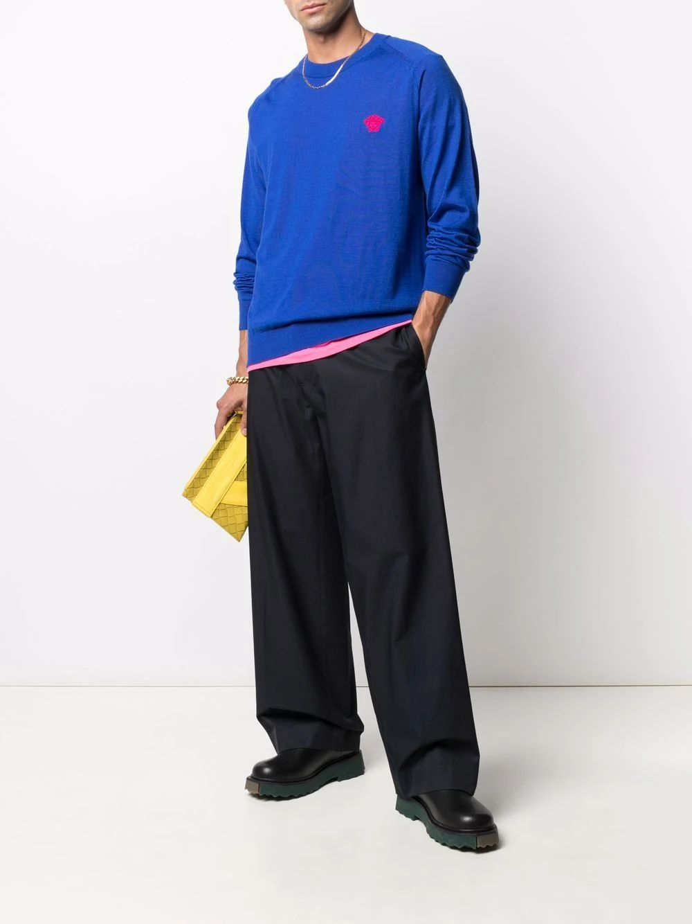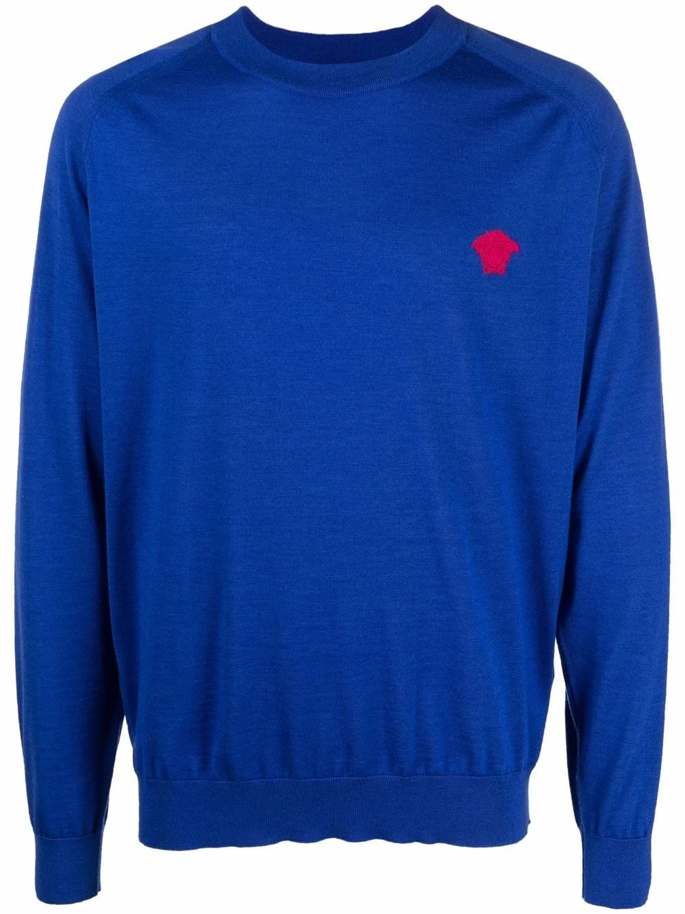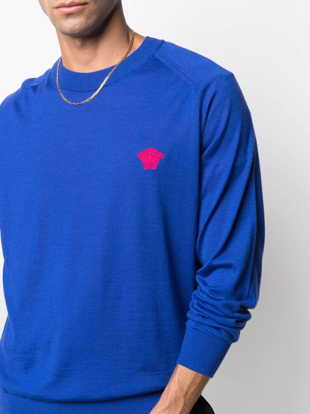 Motif Medusa, encolure ras du cou, manches raglan longues, ourlet droit.