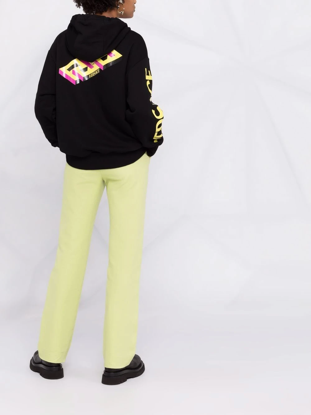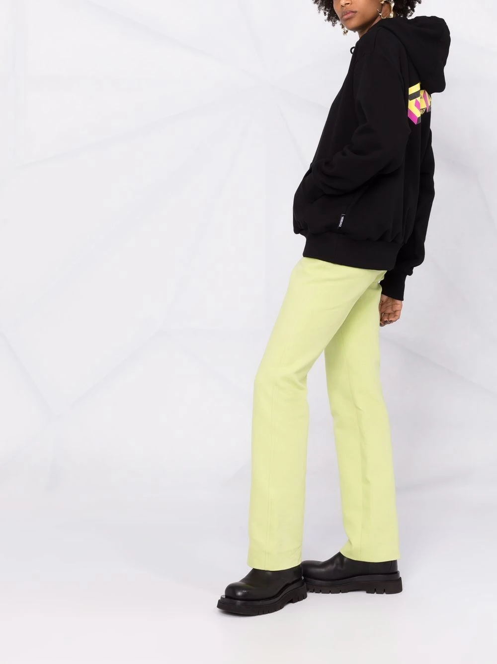 Imprimé monogrammé, imprimé graphique à l’arrière, poche plaquée sur le devant, poignets nervurés, manches longues, capuche classique. Matière : coton.