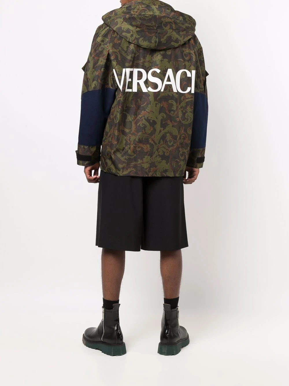 Imprimé Baroccoflage signature, col cheminée, logo imprimé à l’arrière, patch poitrine à logo, poches devant à rabat, fermeture dissimulée sur le devant, manches longues. Couleur : vert. Matière : coton.