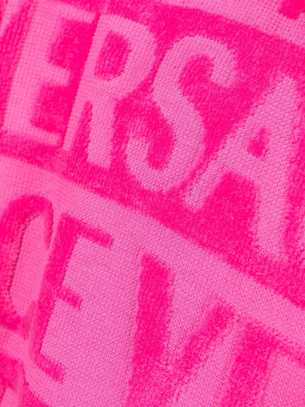 Imprimé monogrammé, imprimé Barocco signature, deux poches plaquées avant, col châle, capuche souple, manches longues, taille nouée. Matière : coton.
