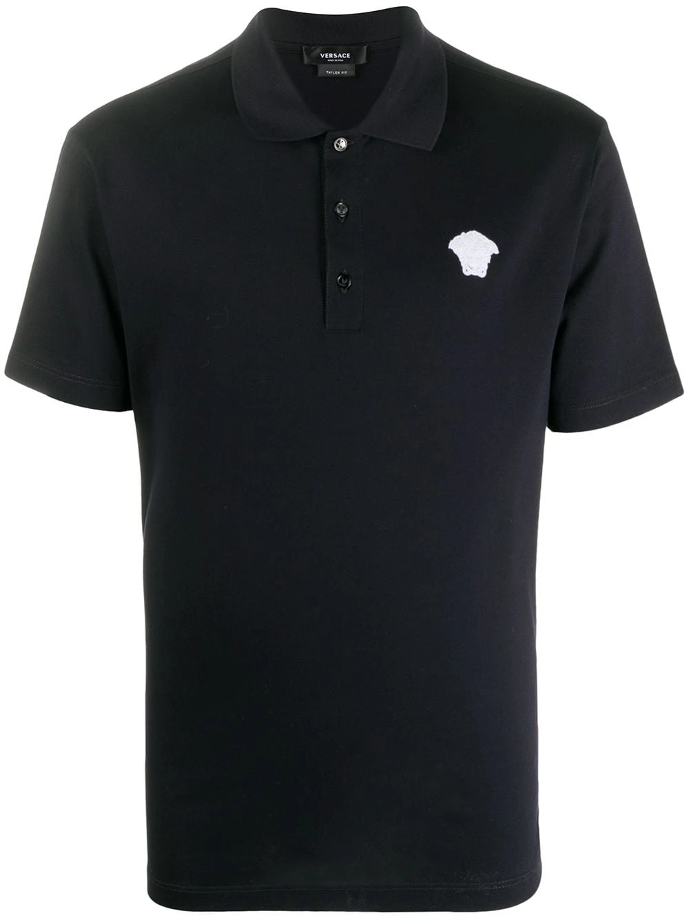 Motif Medusa, col polo, manches courtes, ourlet droit. Matière : coton.