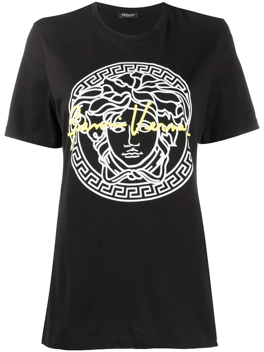 Motif Medusa, encolure ronde, manches courtes, ourlet droit. Couleur : noir. Matière : coton.