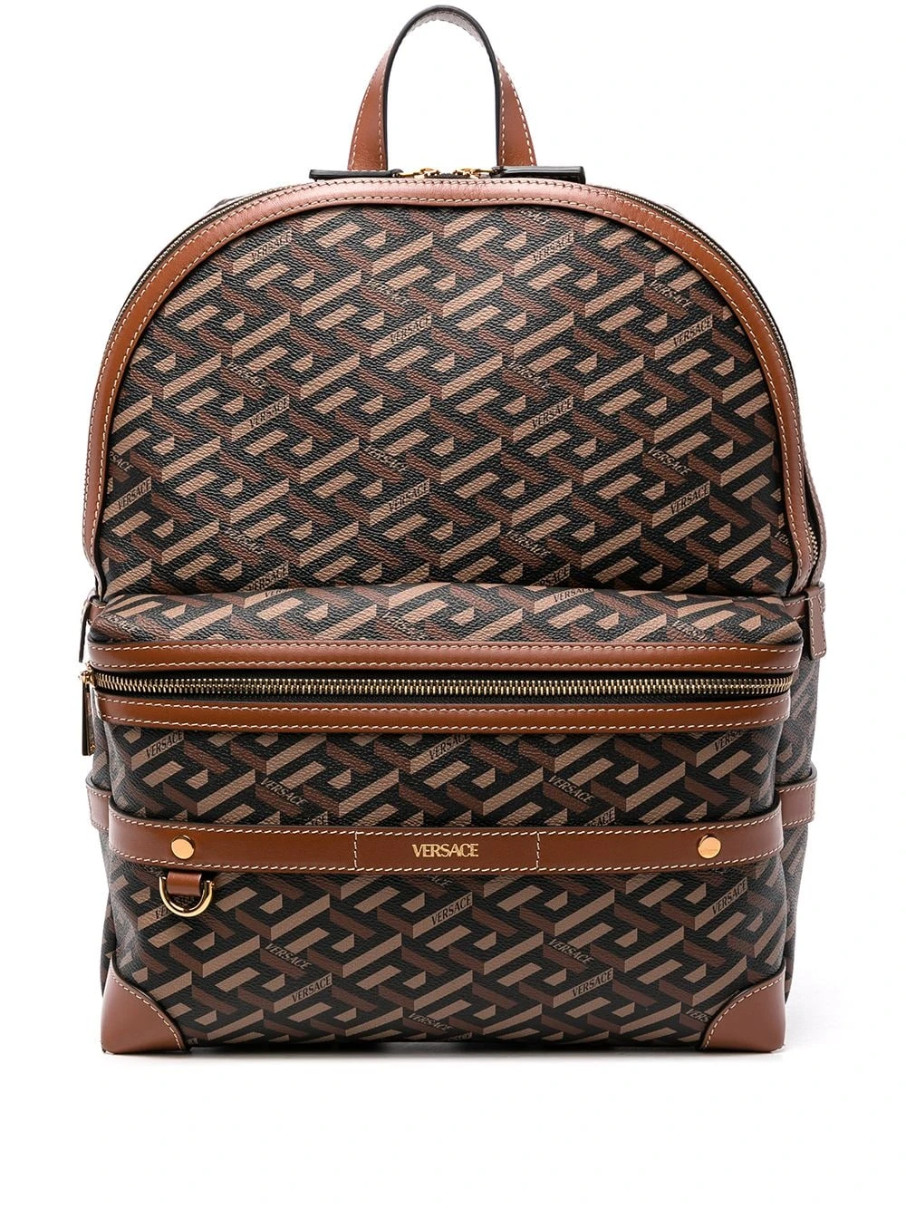 Imprimé monogrammé, fermeture zippée devant, anse arrondie, brides porté épaule ajustables. Couleur : marron. Matière : cuir.