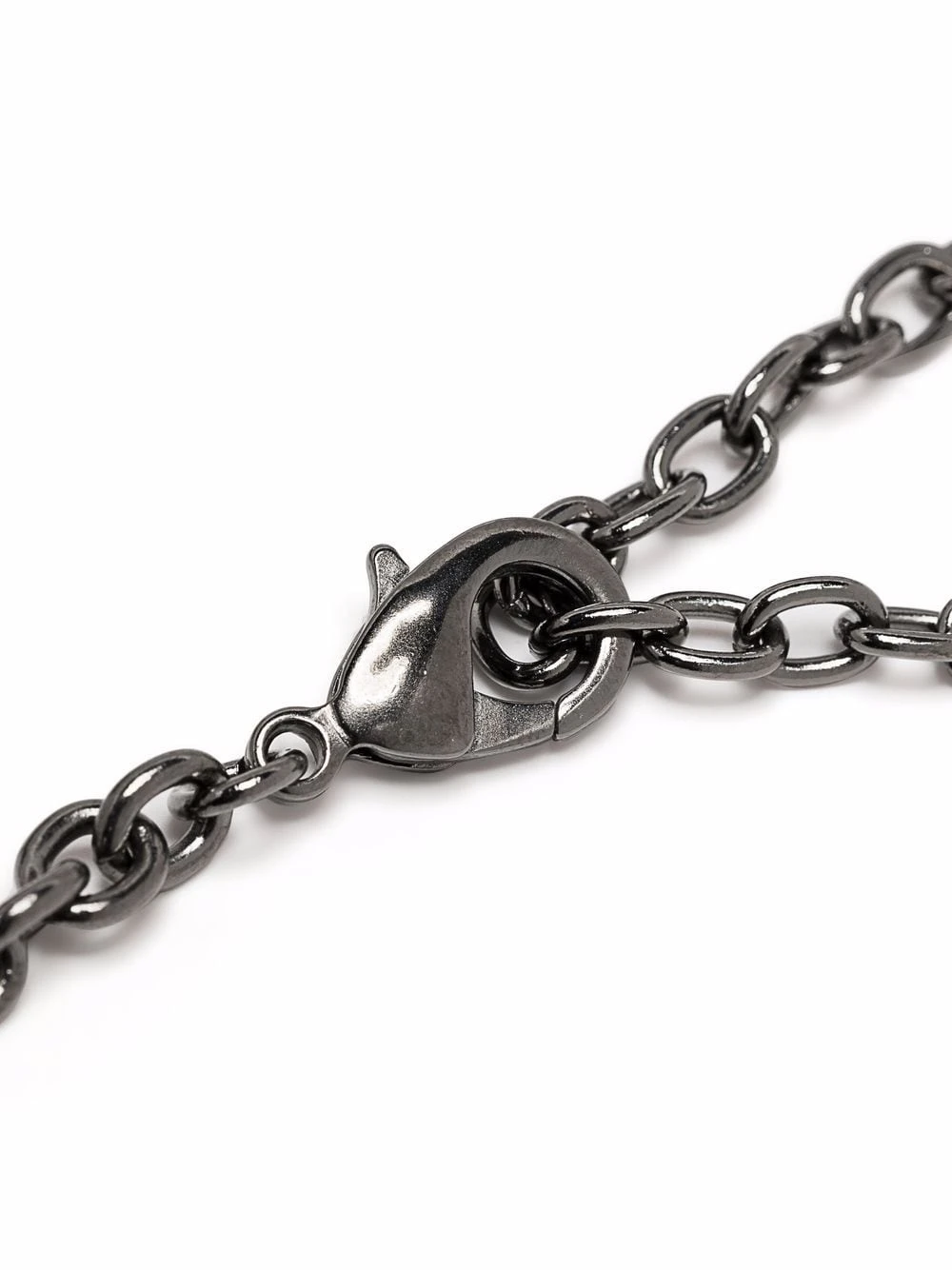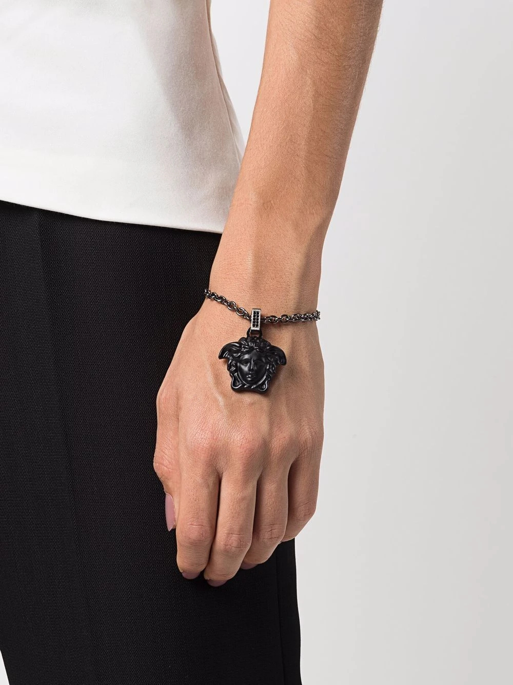 Fermoir mousqueton, chaîne à longueur ajustable, maille jaseron, motif Medusa. Matière : métal.