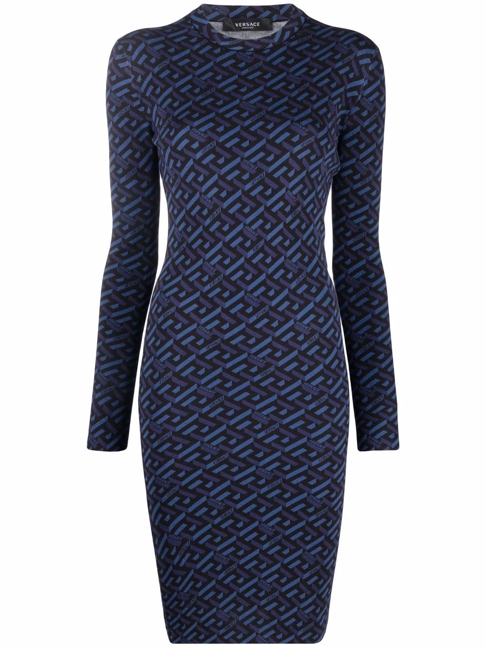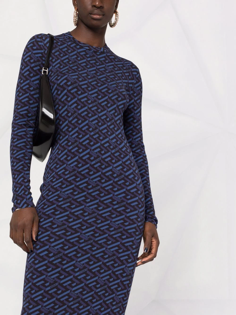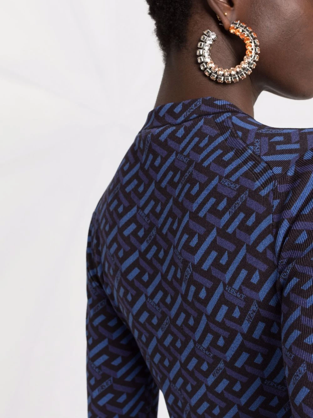 Motif monogrammé, encolure ronde, manches longues, ourlet droit, construction stretch.