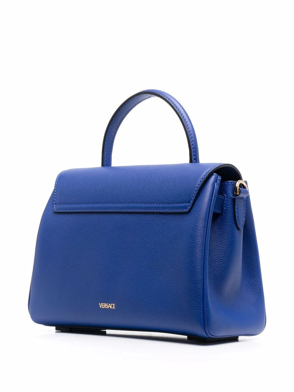 Motif Medusa, bride porté épaule en chaîne détachable, bride porté épaule détachable et ajustable, design ton sur ton, rabat sur le dessus à fermeture magnétique, compartiment principal, anse arrondie. Couleur : bleu. Matière : cuir de veau.