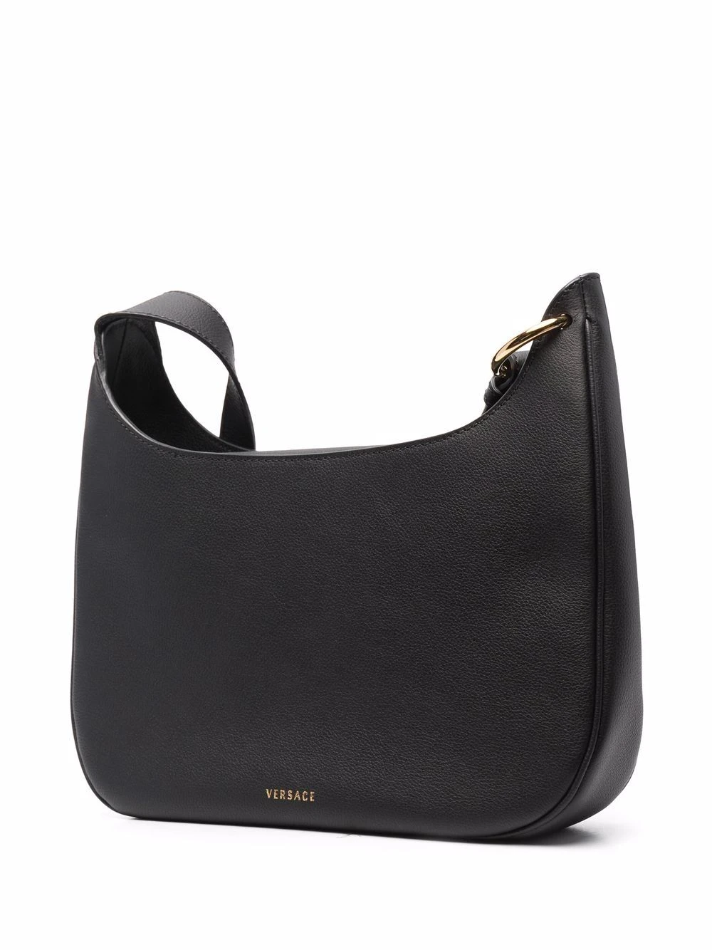 Motif Medusa, logo imprimé à l’arrière, bretelle portée épaule unique, poche intérieure zippée, finitions en métal doré. Couleur : noir. Matière : cuir de veau.