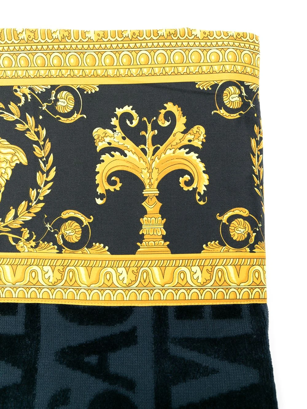 Imprimé Barocco signature, motif monogrammé embossé, modèle bicolore, tissu-éponge. Couleur : bleu. Matière : coton.