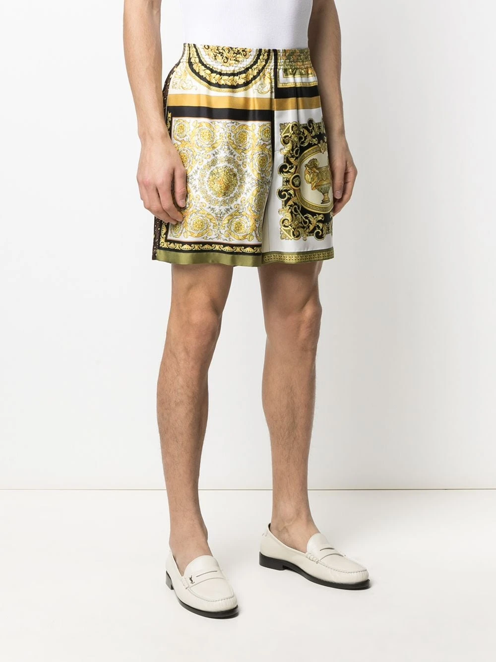 Imprimé Barocco signature, imprimé léopard, ceinture élastique, poche arrière passepoilée. Couleur : multicolore. Matière : soie.