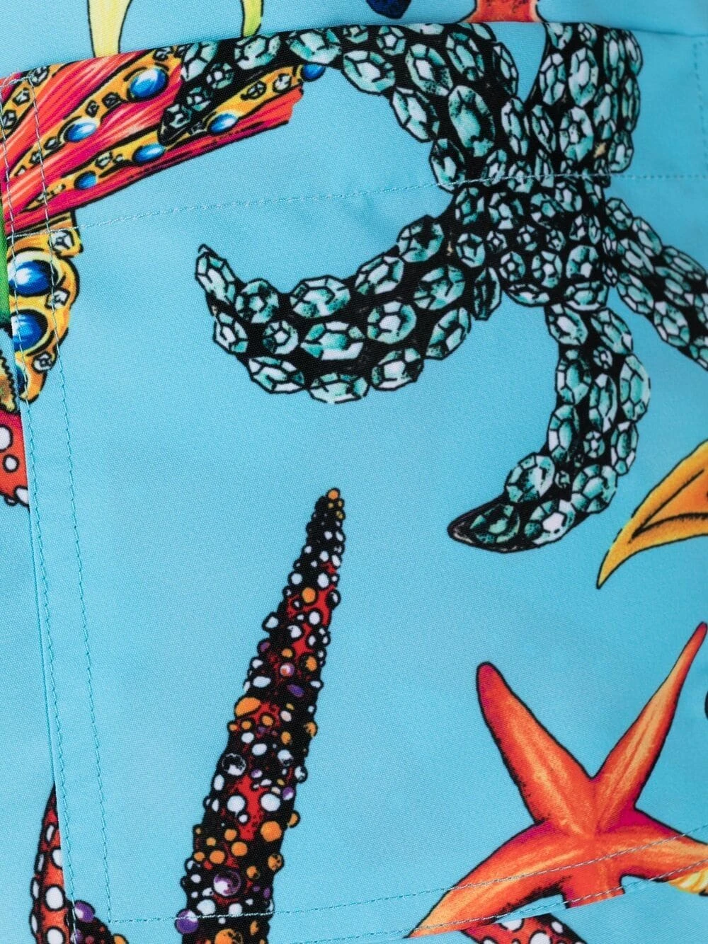 Coquillage imprimé, construction stretch, taille élastique à lien de resserrage, poches latérales fendues, poche arrière plaquée. Veillez à essayer les maillot de bain par-dessus vos propres sous-vêtements.