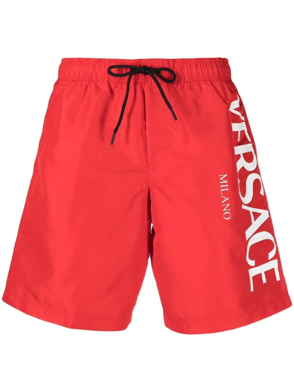 Logo imprimé sur le côté, taille élastique à lien de resserrage, deux poches latérales fendues, poche arrière plaquée. Couleur : rouge. Veillez à essayer les maillot de bain par-dessus vos propres sous-vêtements.