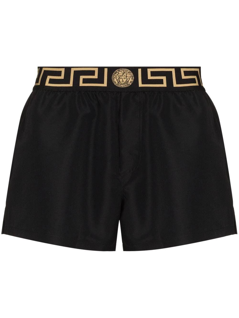 Motif Medusa, détail Greca signature, ceinture élastique, coupe droite, coupe courte, poche arrière passepoilée. Couleur : noir. Veillez à essayer les maillot de bain par-dessus vos propres sous-vêtements.