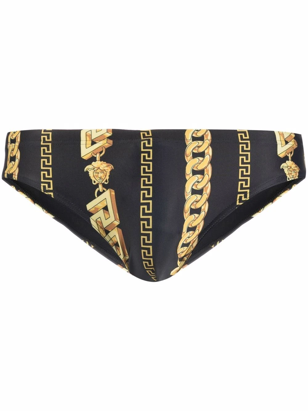 Imprimé Barocco signature, motif Greca signature imprimé, taille basse, construction stretch. Veillez à essayer les maillot de bain par-dessus vos propres sous-vêtements.