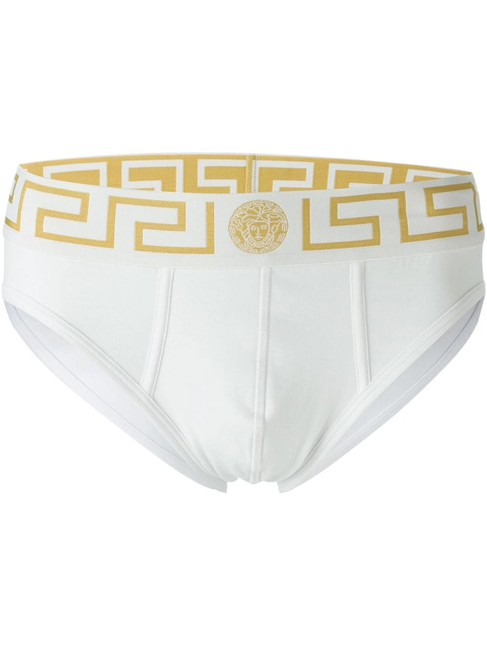 Slip Medusa en coton stretch blanc et doré Versace avec bordure élastique.