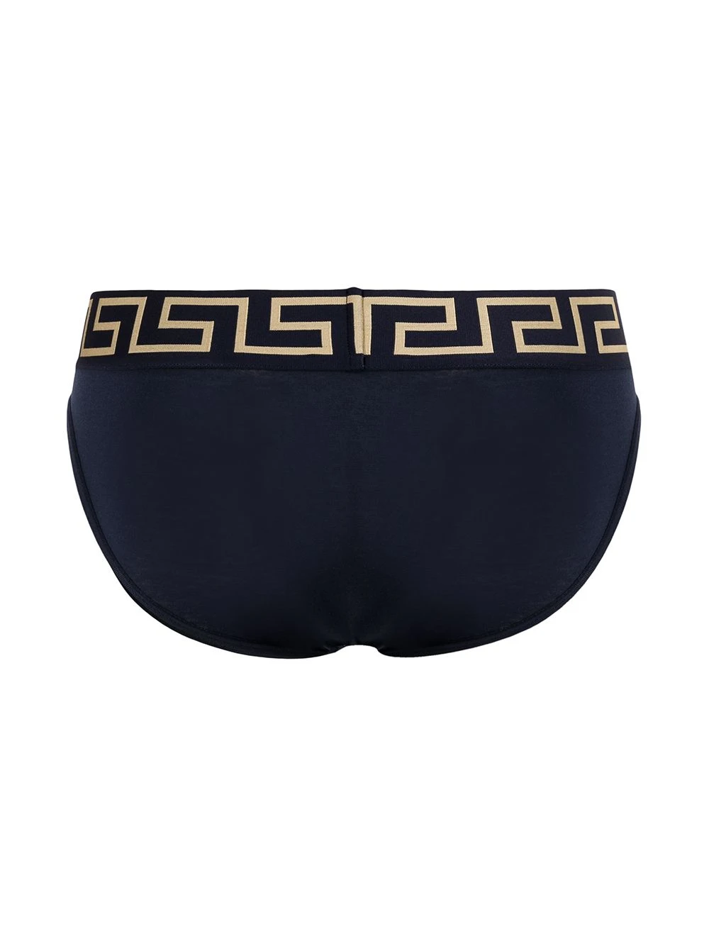 Ceinture élastique, motif Greca signature imprimé, motif Medusa. Couleur : bleu. Matière : coton. N’oubliez pas : cet article doit être essayé par-dessus vos propres vêtements.