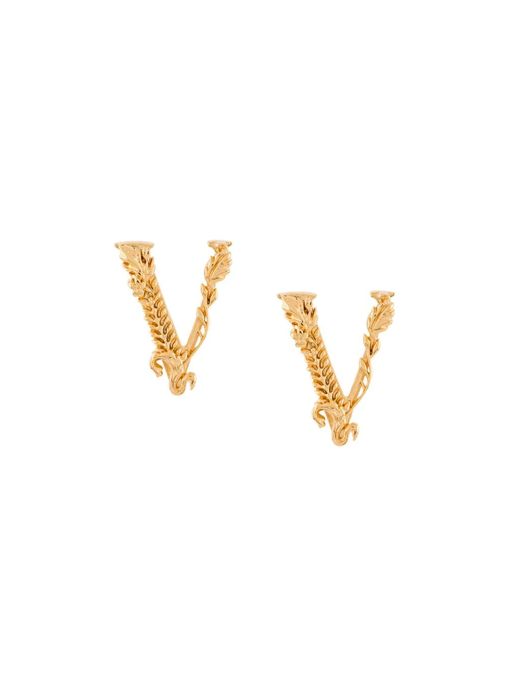 Boucles d’oreilles Virtus en métal Versace avec finition texturée, an engraved logo et fermoir papillon. Ces boucles d’oreilles sont vendues par paire.
