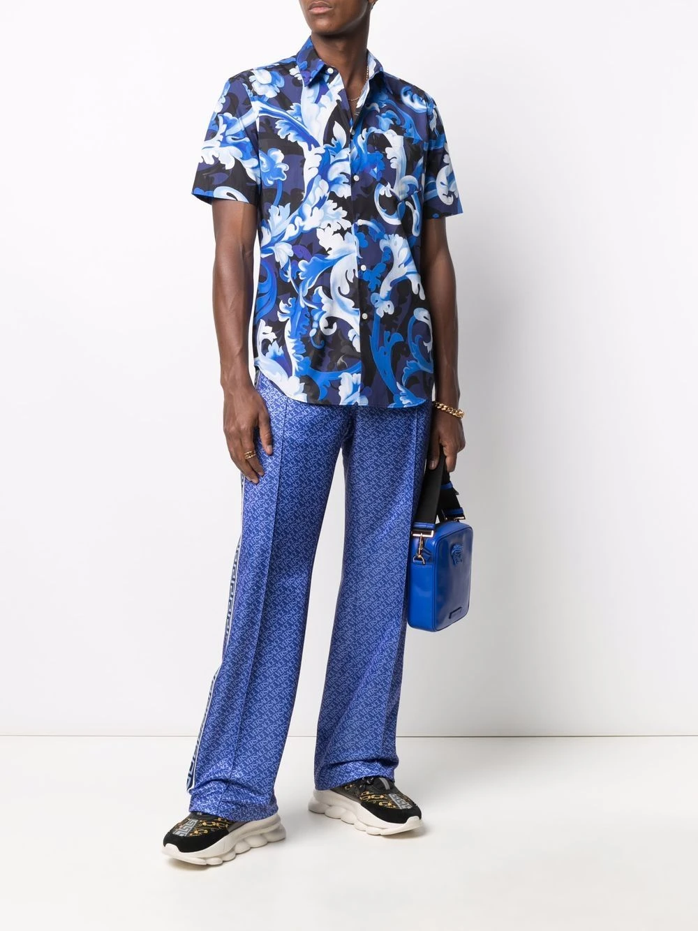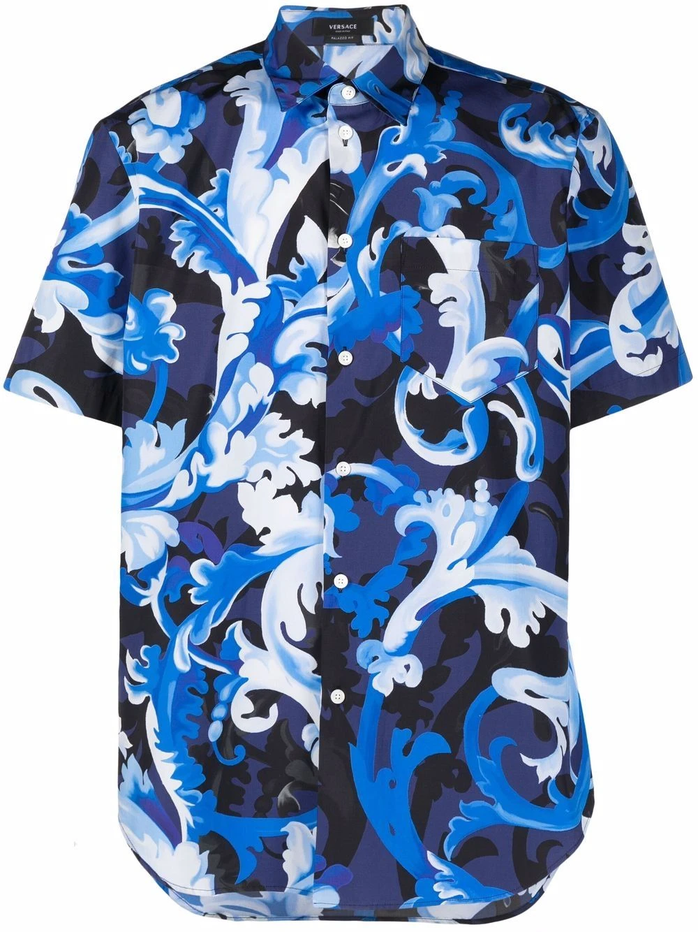 Imprimé Baroccoflage signature, col classique, poche poitrine plaquée, manches courtes, boutonnière sur le devant, ourlet incurvé. Couleur : bleu. Matière : coton.