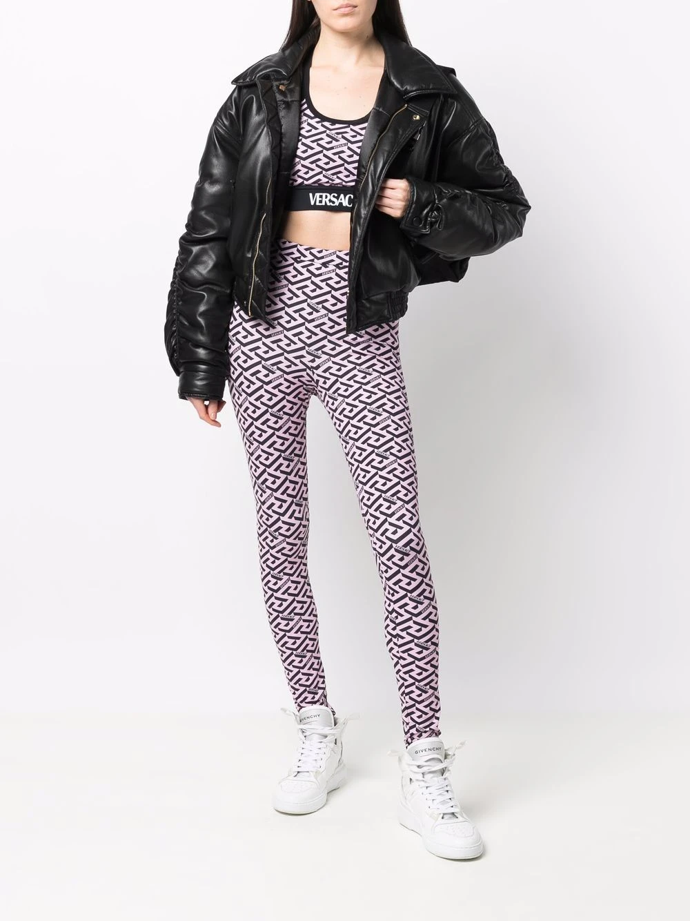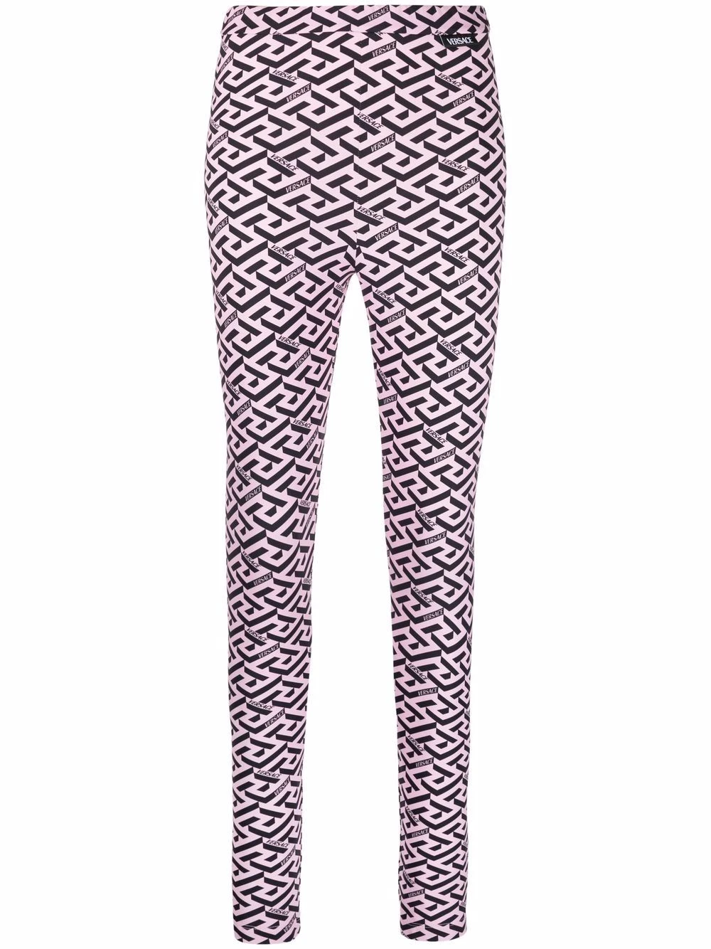 Construction stretch, imprimé La Greca signature, imprimé monogrammé, taille haute, coupe skinny.