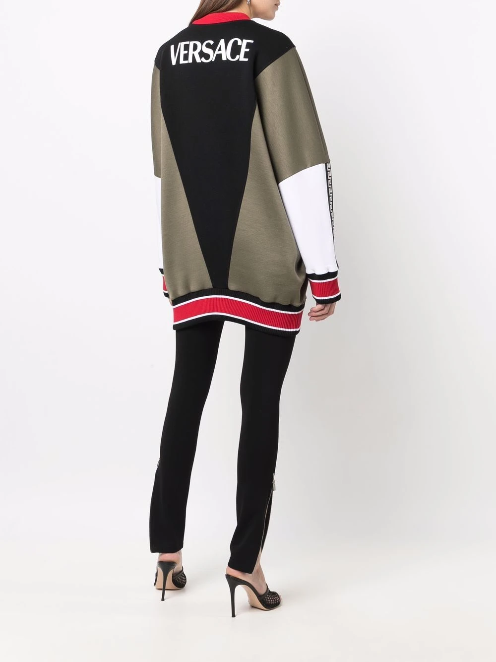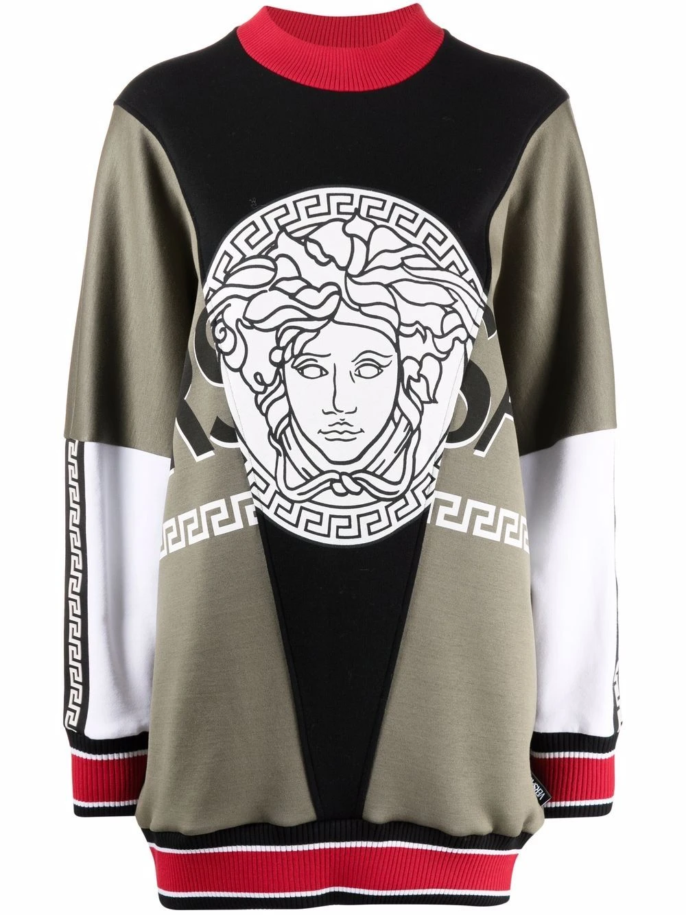 Motif Medusa, détail Greca signature, logo imprimé sur le devant, logo imprimé à l’arrière, détails rayés, design à empiècements, encolure ras du cou, manches longues. Couleur : multicolore.