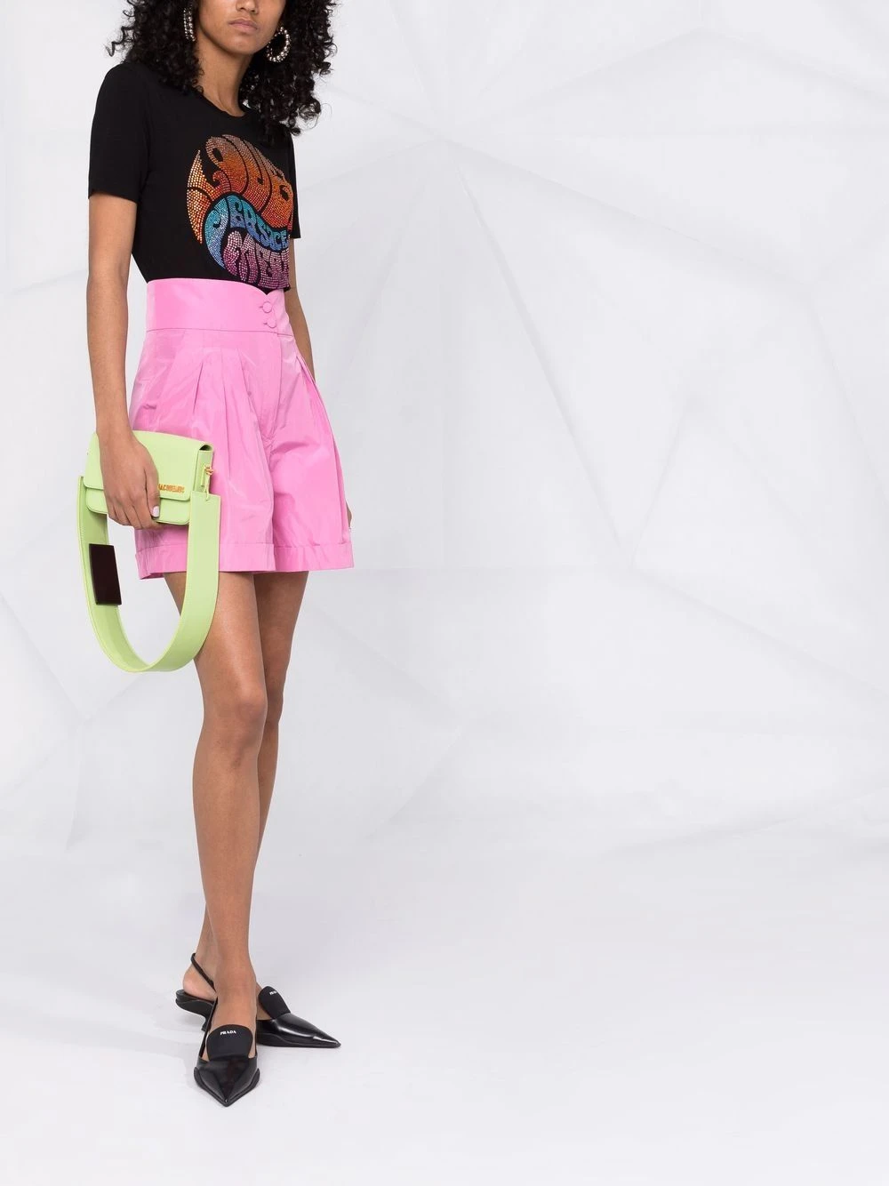 Ornement en cristal, encolure ronde, manches courtes, poignets nervurés, ourlet droit. Couleur : noir.