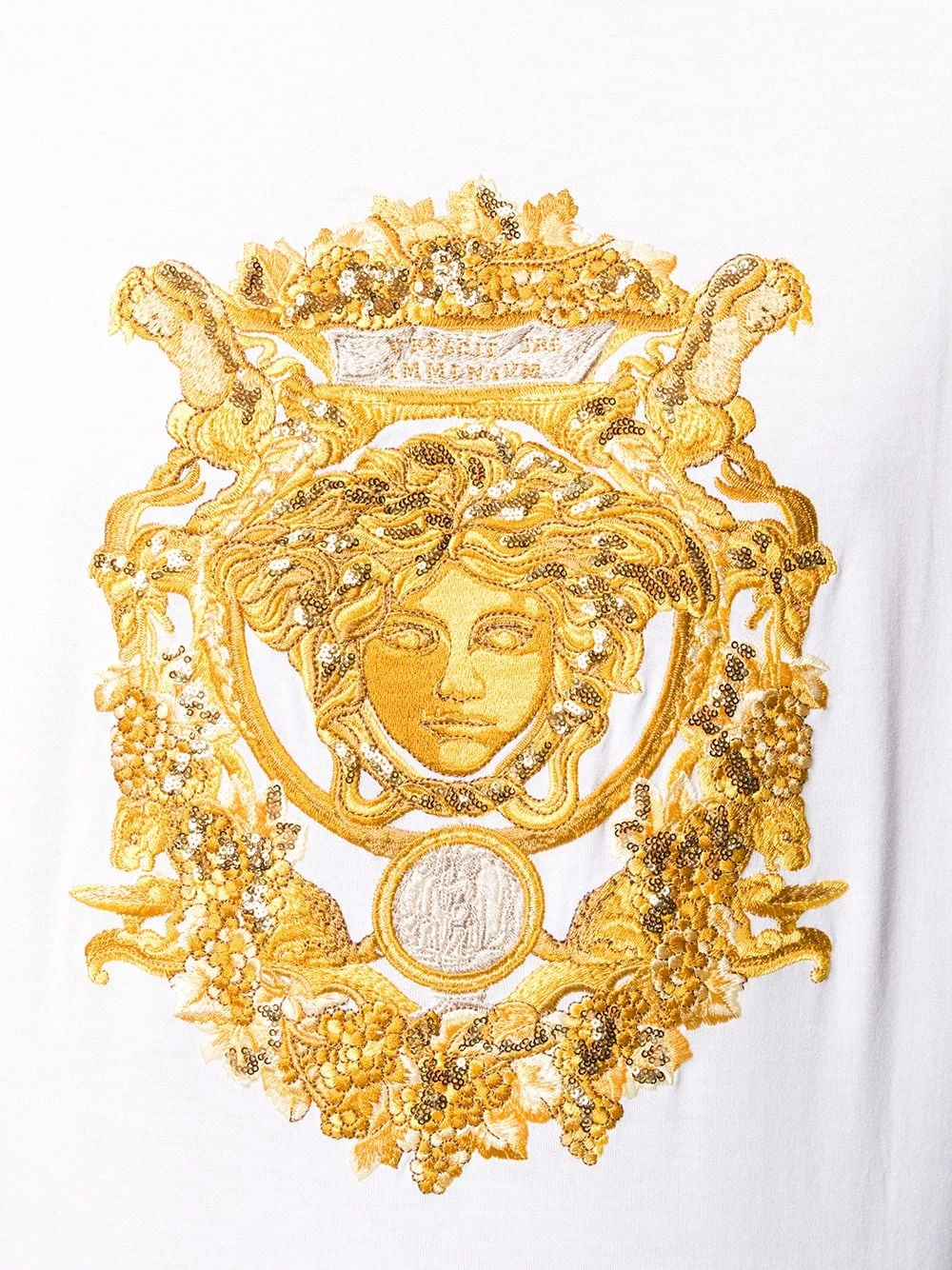 T-shirt à logo brodé Medusa en coton Versace avec encolure ras du cou, manches courtes et ourlet droit.