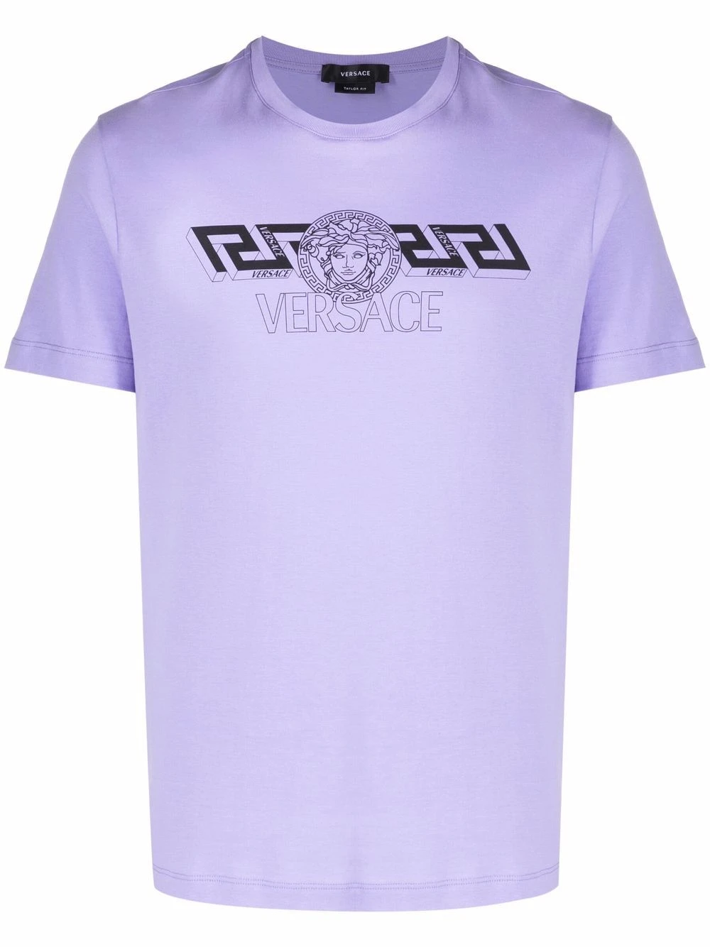 Motif Medusa, motif Greca signature imprimé, encolure ronde, manches courtes, ourlet droit. Matière : coton.