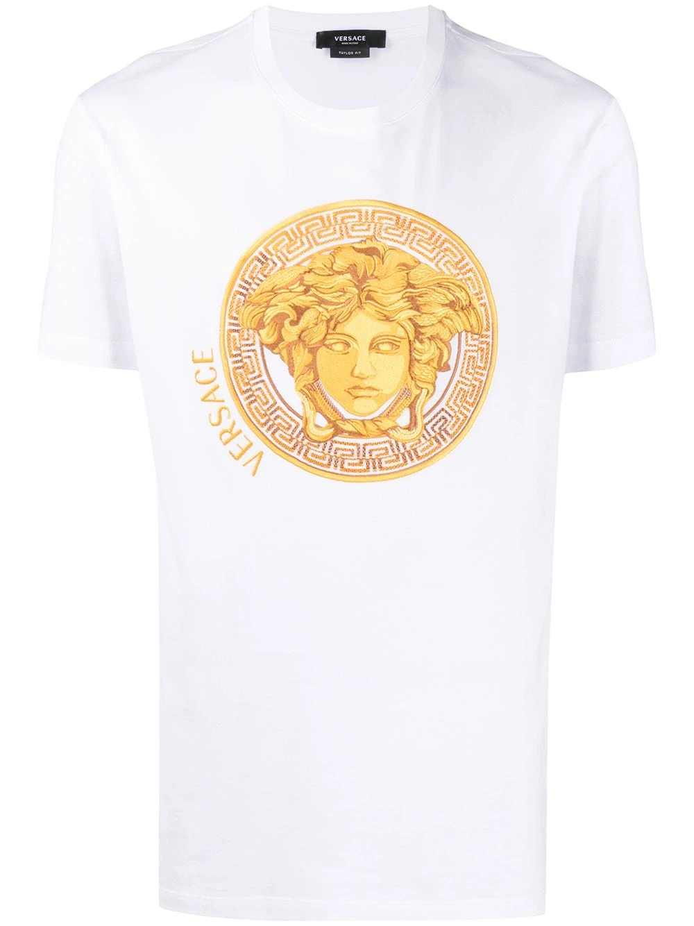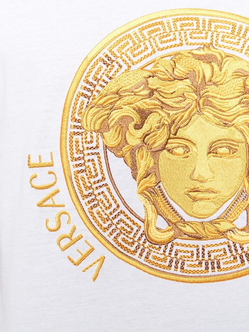 Motif Medusa, broderies, encolure ronde, manches courtes, ourlet droit. Couleur : blanc. Matière : coton.