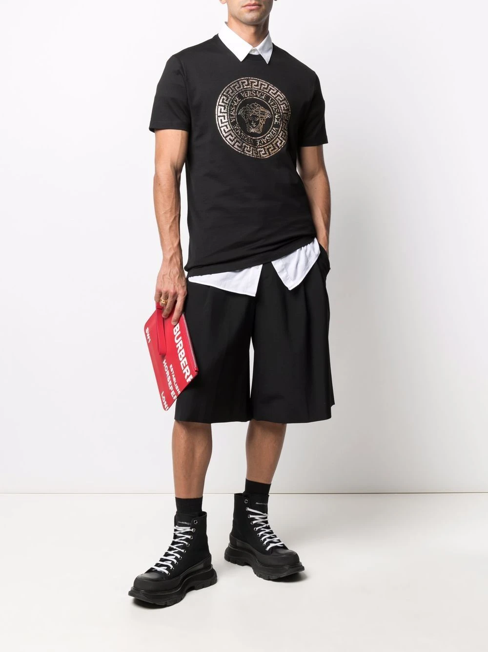 Encolure ras du cou, manches courtes, coutures ton sur ton, motif Medusa, ornement en cristal, ourlet droit. Matière : coton.