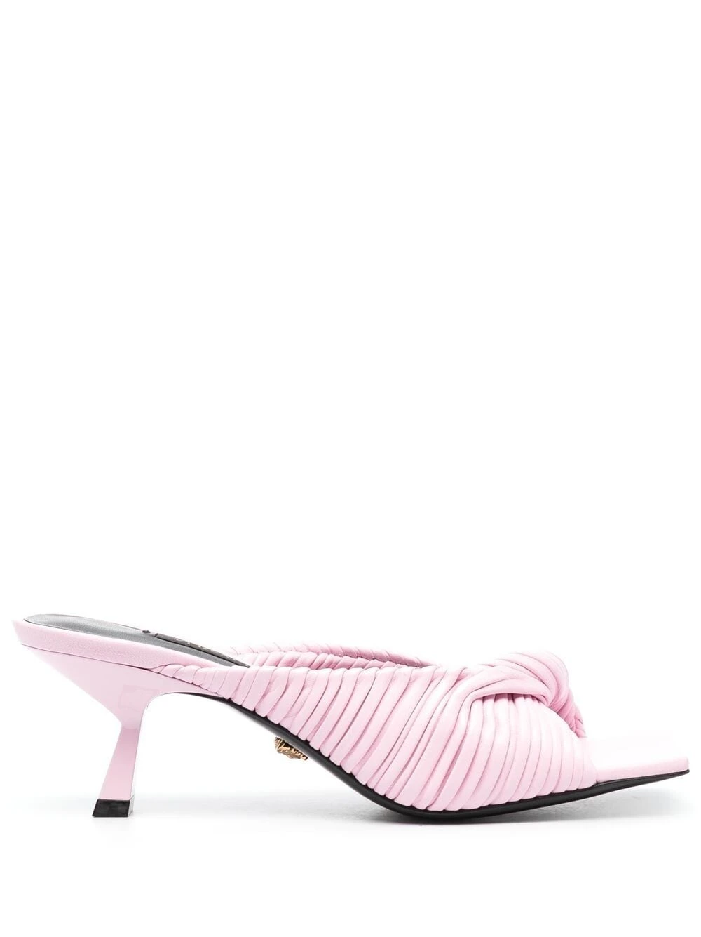 Design ton sur ton, fini texturé, détail torsadé, bout ouvert, design à enfiler. Couleur : rose. Matière : cuir.