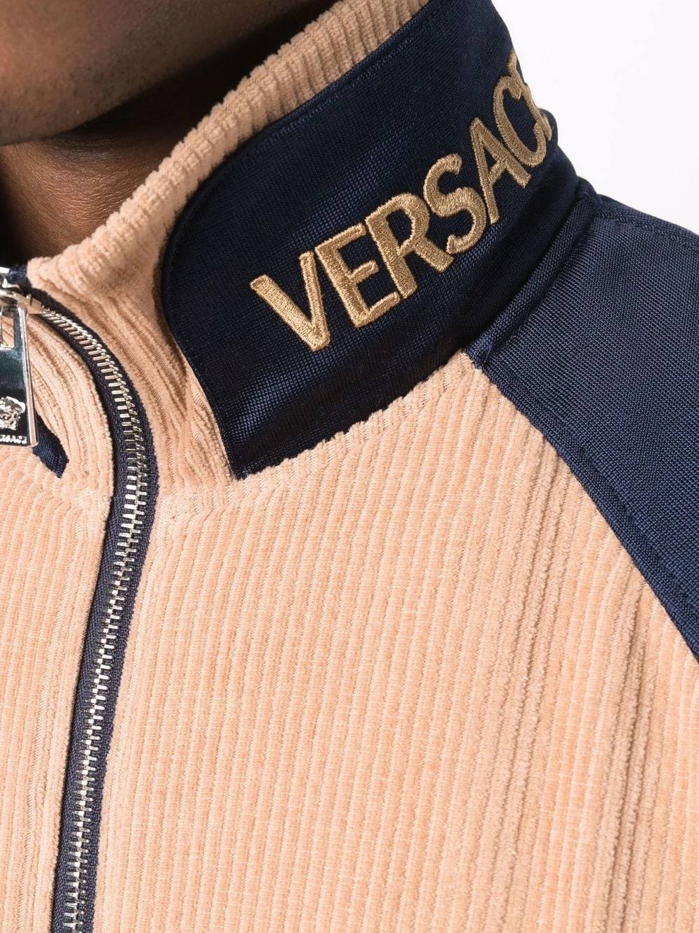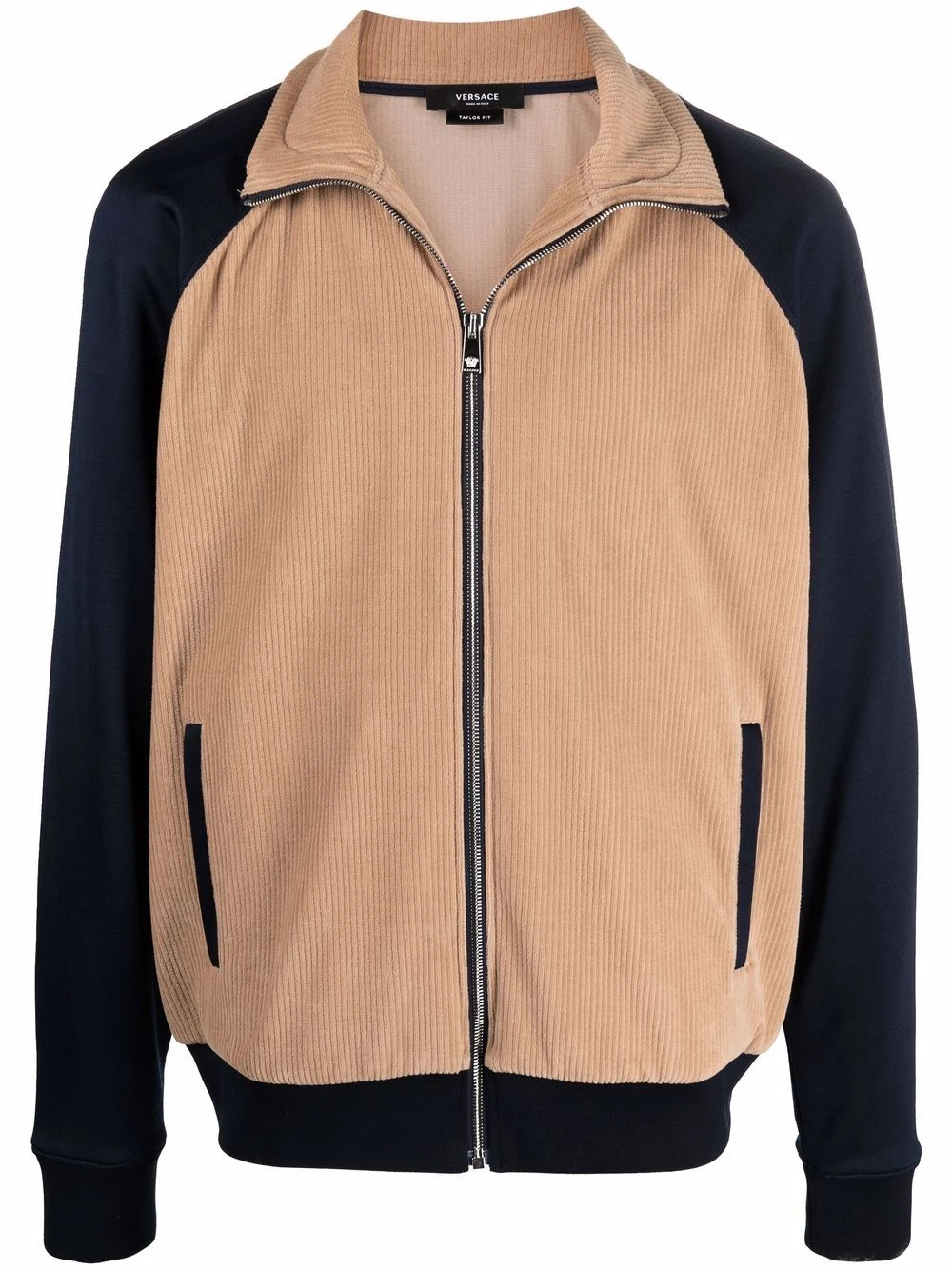 Détails en velours côtelé, logo brodé sur le côté, col montant, fermeture zippée devant, manches longues, poches latérales fendues, ourlet nervuré.