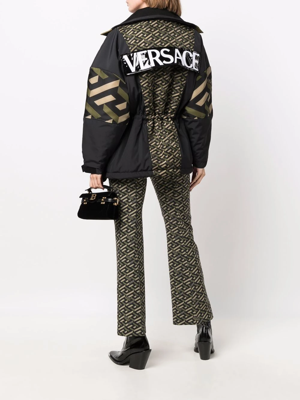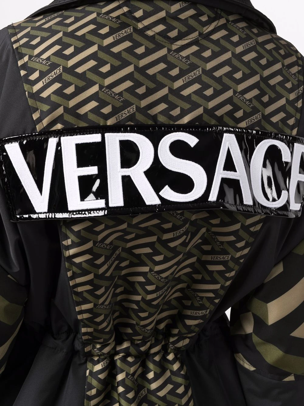 Détail Greca signature, capuche classique, fermeture zippée devant, logo imprimé à l’arrière, manches longues.